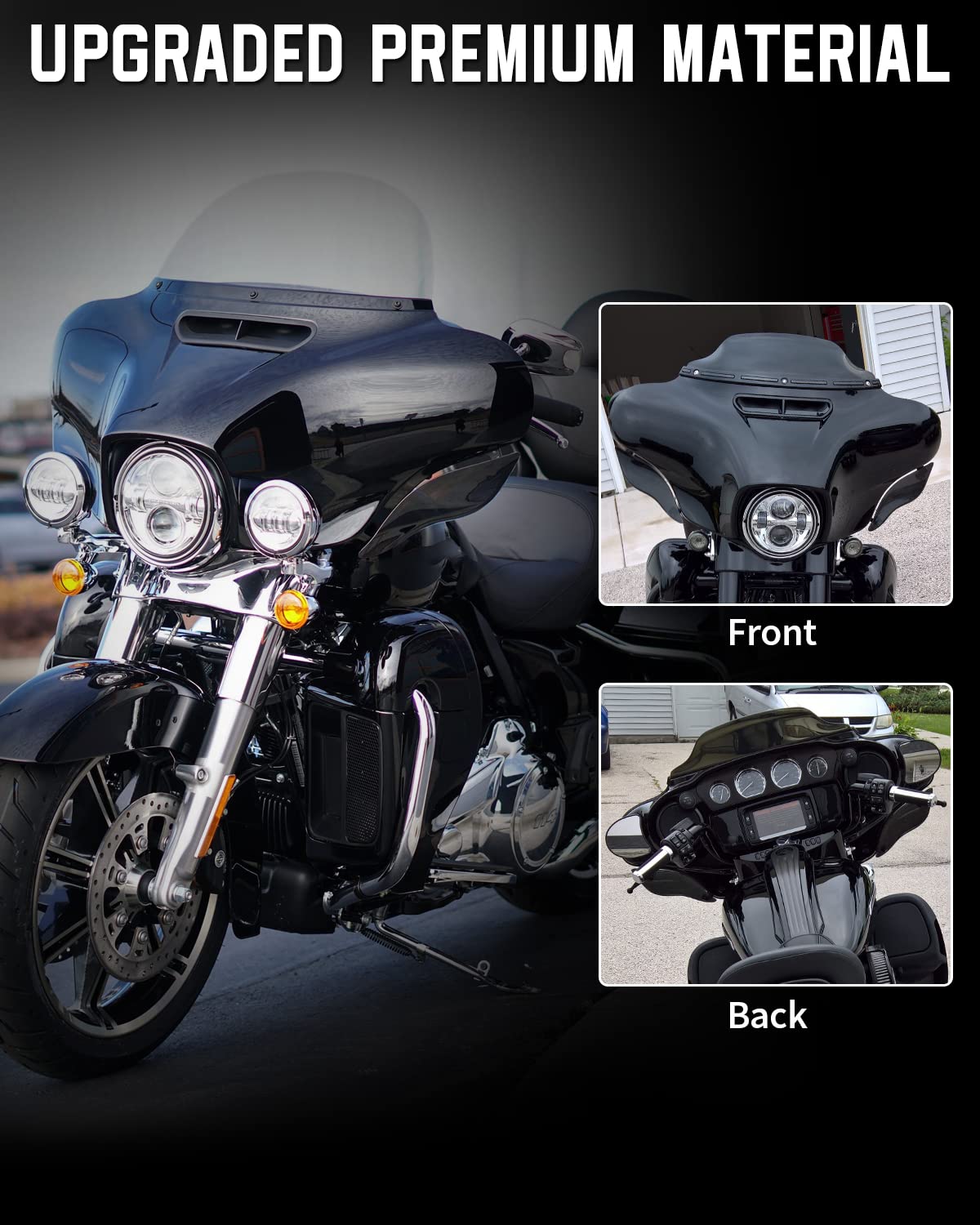Q: Are the ANONEMOTO Wind Deflectors compatible with my Harley Davidson model?A: The ANONEMOTO Black Adjustable Wind Deflectors are designed to be compatible with Harley Touring models from 2014 to 2024, including the Street Glide, Electra Glide, Ultra Limited, Tri Glide, and CVO models. Always double-check your specific bike model before purchasing to ensure compatibility.
