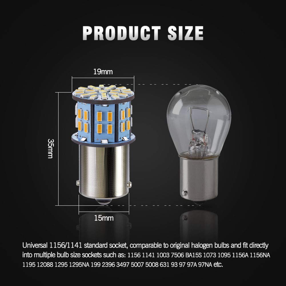 Antline'S Guarantee: We Take ''The Customer'S Satisfaction First'' As Our Principle And Offer ''One Year'' Warranty On Item(S) Damaged During Delivery Or Have A Confirmed Manufacturer Defect. Features - Led Type: 50-Pieces 3014 Chipset - Lumen: 600Lm/Bulb - Voltage: 12V Dc - Current: 300Ma - Wattage: 3W/Bulb - Length And Diameter: 1.7'' X 0.7'' - Lifespan: 30,000 Hours Application:Rv Camper Trailer Boat Interior Light Bulbs, Tail Lights, Brake Lights, Parking Lights, Center High Mount Stop Lights, Turn Signal Lights. Cross Reference: 1156 1141 1003 7506 Ba15S 1073 1383 1095 1156A 1156Na 1195 12088 1295 1295Na 199 2396 3497 5007 5008 631 93 97 97A 97Na Etc. Safe & Extremely Bright Design: Easy To Install, Plug And Play, Unique 360 Degree Lighting Design To Enhance Brightness. Notice: Amazon Filter System May Not Be 100% Accurate. Please Check Your Owners Original Bulb Size Before Purchase.