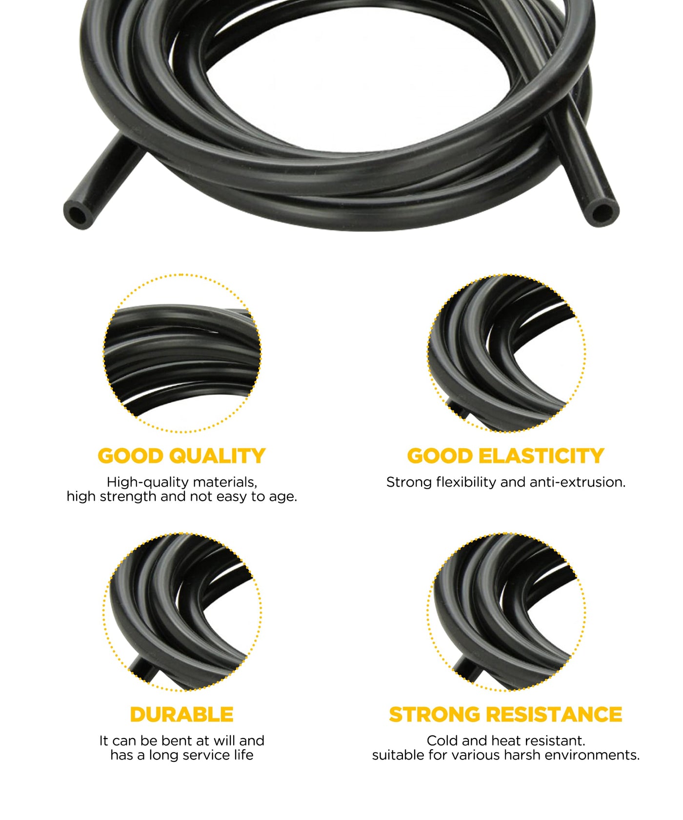 Q: What temperature range can this silicone vacuum hose withstand?A: This silicone vacuum hose can operate effectively within a temperature range of -76 °F to 428 °F, allowing it to endure extreme temperature conditions.