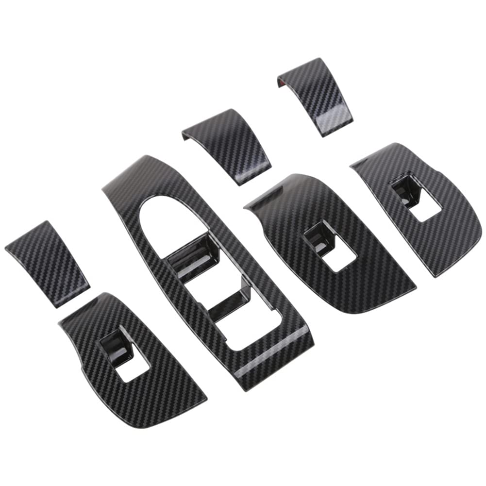 Q: What material is the door lock control button trim made of?A: The trim is made from high-quality ABS plastic in a carbon fiber pattern, providing durability and a stylish appearance to your vehicle.