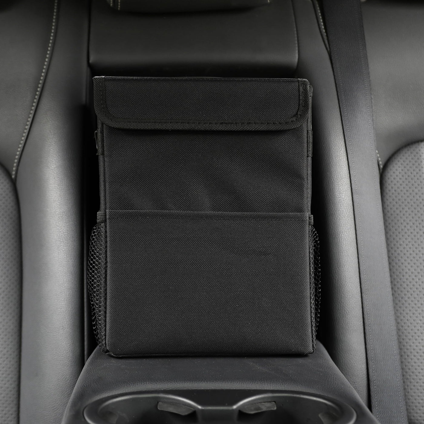 AOKJOY Car Garbage can with lid Leak Proof Vehicle Trash Can 3 Storage Pockets Hanging Waterproof car Trash Bag for SUV Black
