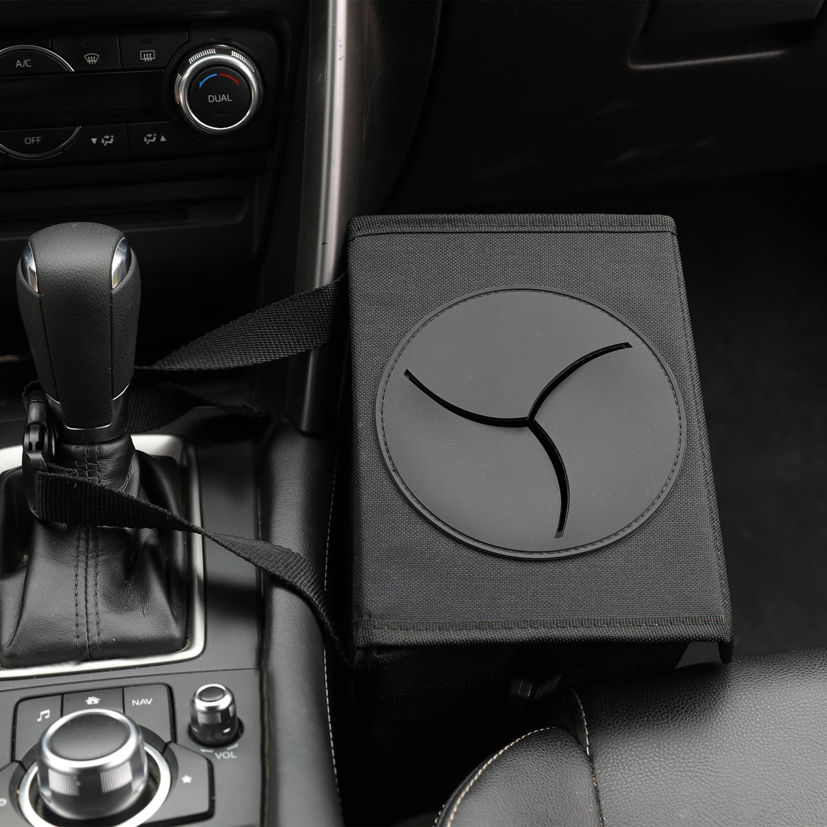 The car garbage bin is made of 600d Oxford cloth polyester fiber material, with three pockets on the front and side A car trash can with a lid can effectively prevent garbage from overflowing and odors, and keep the car clean and tidy Leak proof lining and splash proof. The car trash can is made of high-quality leak proof lining material, which is easy to place damp items or liquids, effectively preventing leakage and overflow, and keeping the car clean and dry. Be careful not to immerse the entire trash can in water as it contains cardboard on the outside