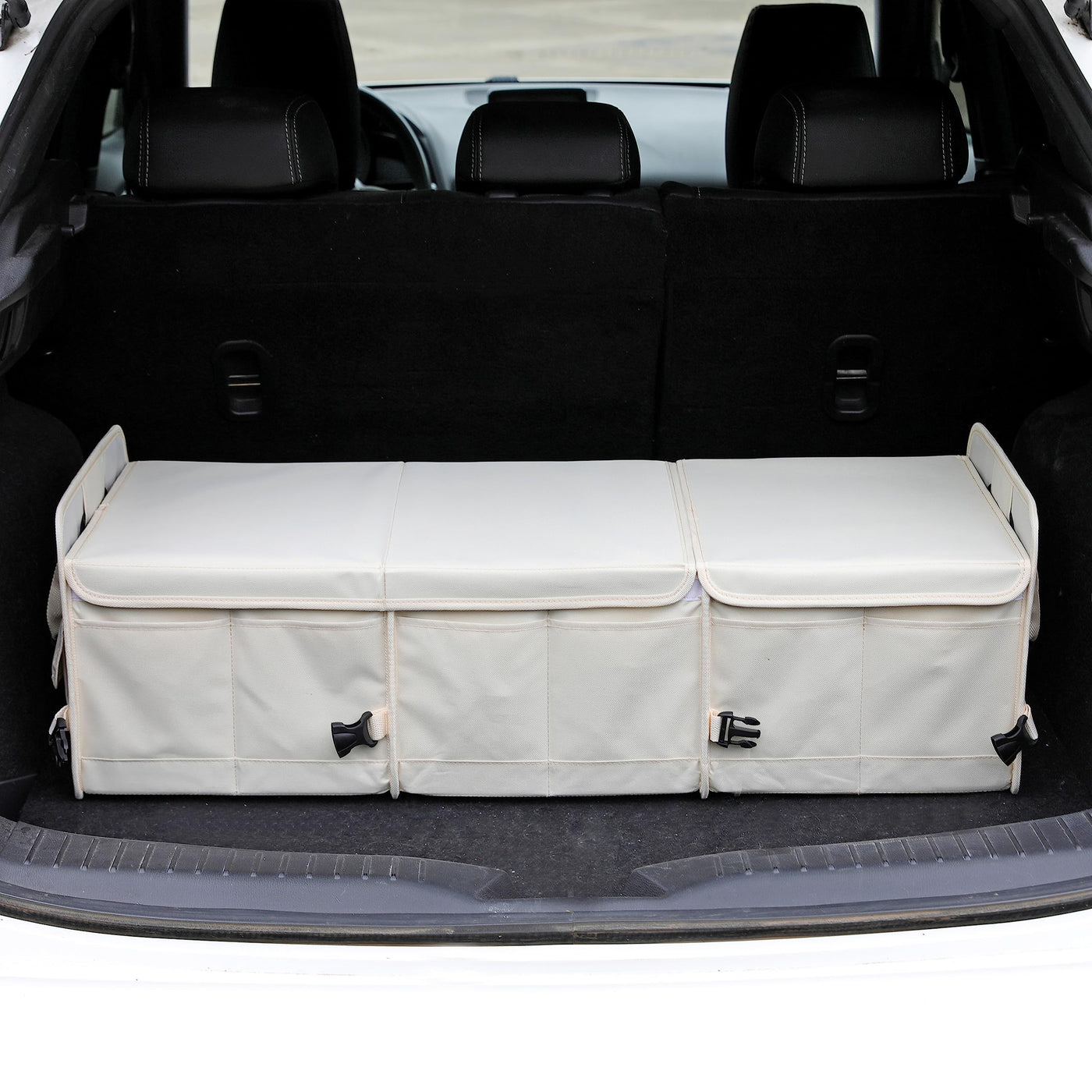 Aokjoy Car Trunk Organizer With Lid Storage Collapsible Multi Compartment Adjustable Straps For Suv, Truck, Sedan(Beige) Xl