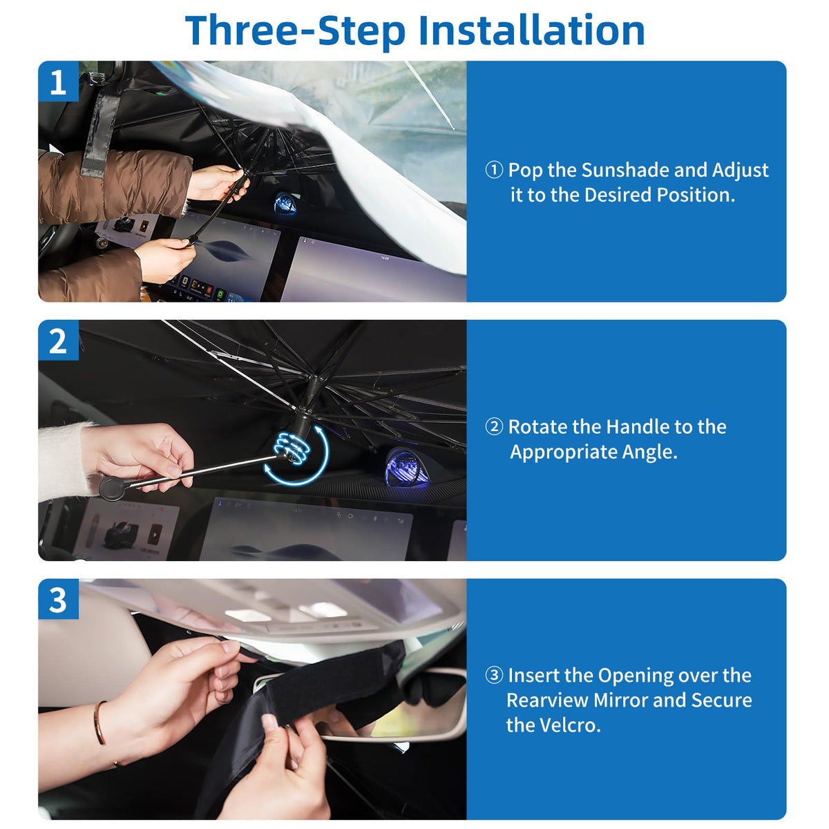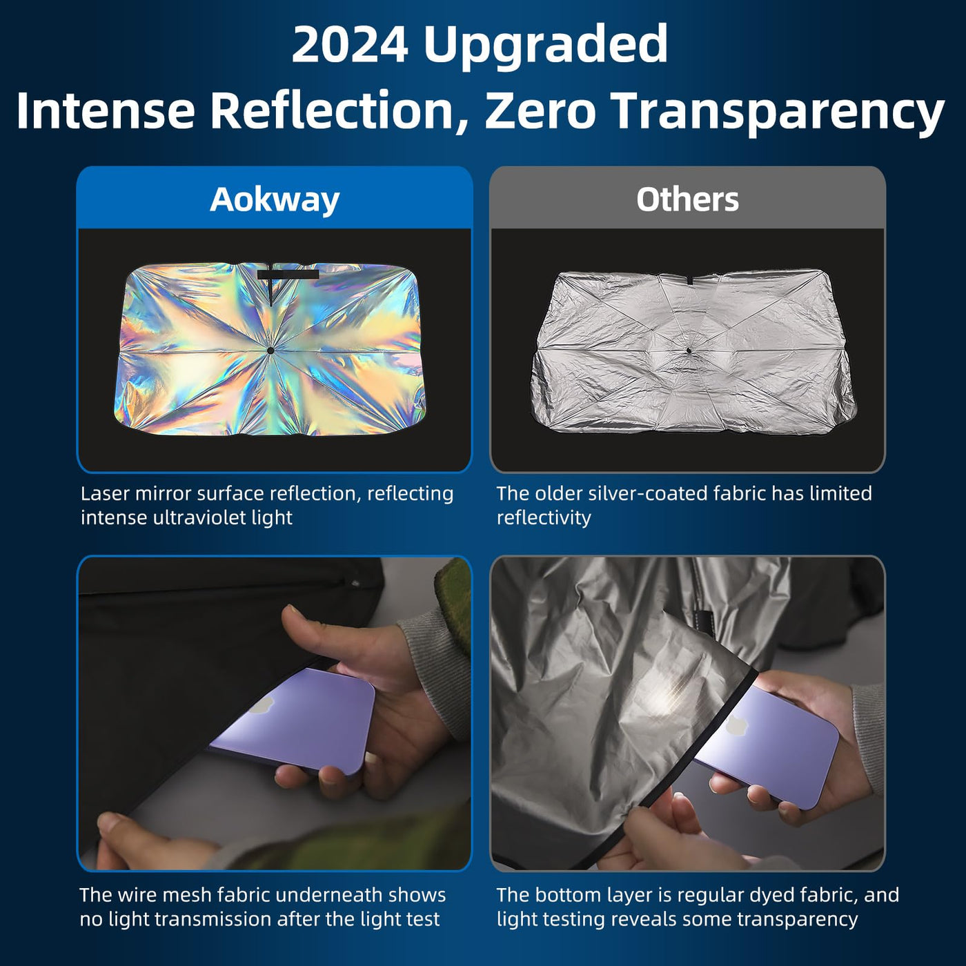 AOKWAY Sun Shade for car Windshield 55x31.5 inch, Foldable Car Front Window Sunshade with 360Rotation Handle, Auto Sunshade Bloc