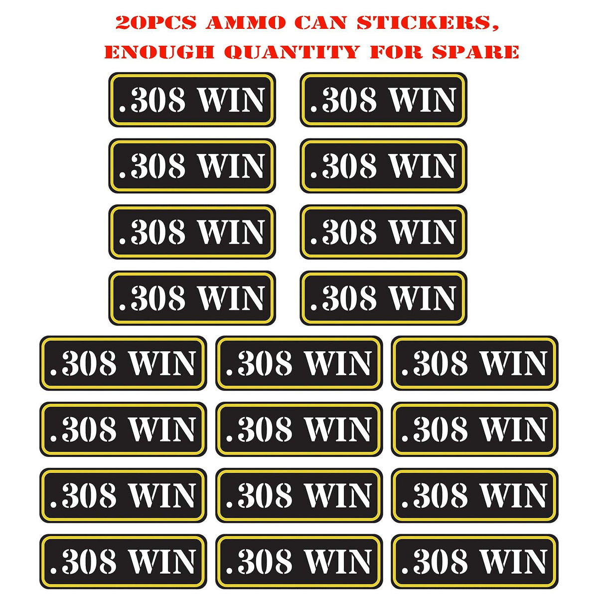 Aolamegs Ammo Can Vinyl Sticker Set Decal Label For Cans Cases Boxes .22 .223 .308 9Mm .380 .45 5.56 7.62 12Ga 300Blk (20 Pack/.