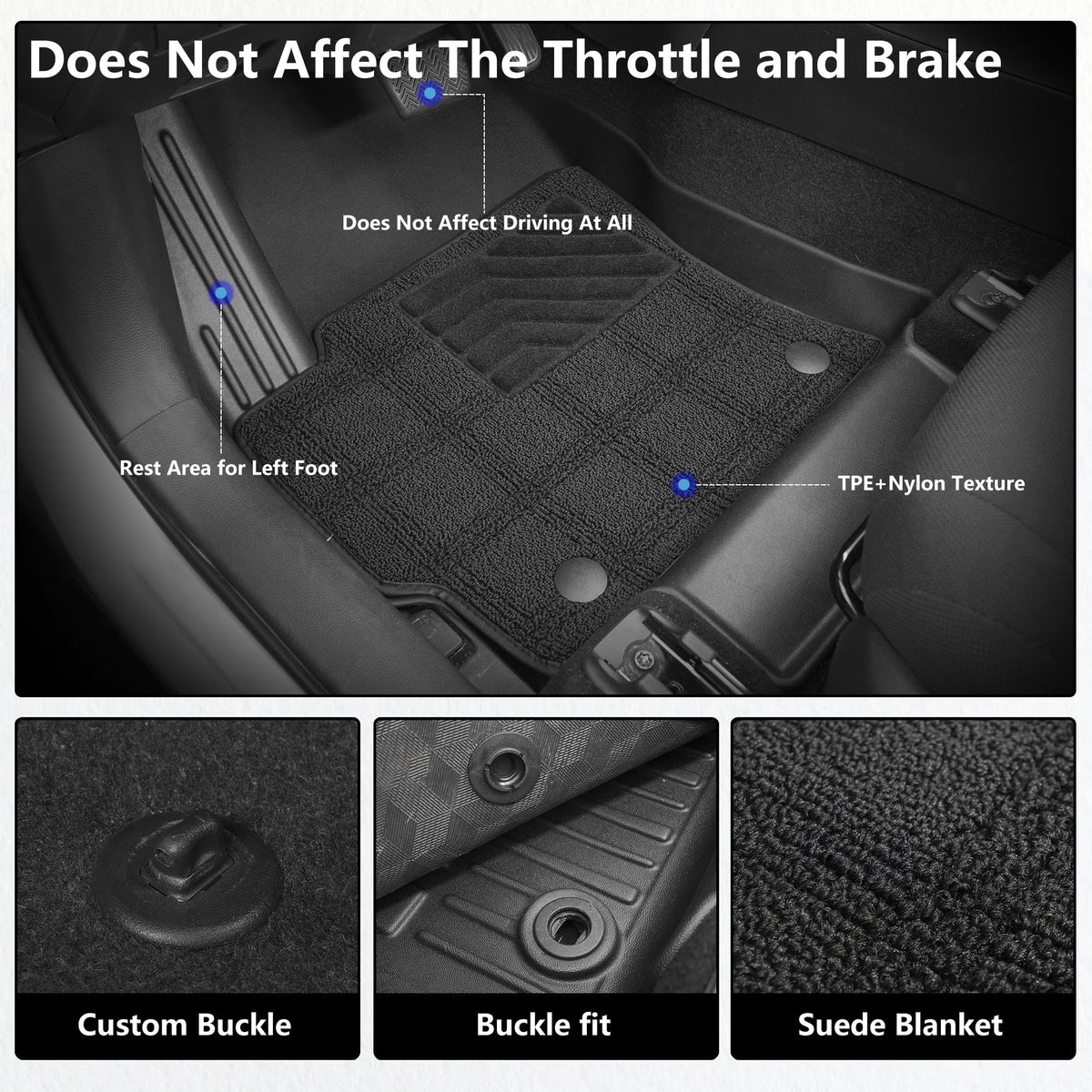 We are a professional supplier of automotive accessories, with a variety of seat covers, floor mats, steering wheel covers and other products. If you need more car interiors, please enter our store to find more products you need. Product: All Weather Protection Floor Mats Material: TPE Product contains:2 Front floor mats 1 Rear floor mats 1 Installation Manual All Weather Guard This set of floor mats can provide protection for your car all season,prevent your original car carpet from being damaged. It can also add fashion sense to the interior decoration of your car. Perfectly Fit Using the original car data 3D laser measurement, integrally molded,perfectly fit for the interior contours of your vehicle. TPE Material Heavy duty TPE material is environmentally friendly and safe, non-toxic and odorless, will not release toxic substances in summer or winter. Unique Groove Texture The groove on the surface of the floor mats can increase friction, and the channel can easily divert liquid, sand or snow, making it easy to clean. Waterproof The waterproof surface can resist liquid intrusion, and it is easy to clean.Just take out the floor mats,rinse it with a washer gun. Snap Button Design Match the anchors of the car floor,used to fix the floor mat to prevent it from sliding.