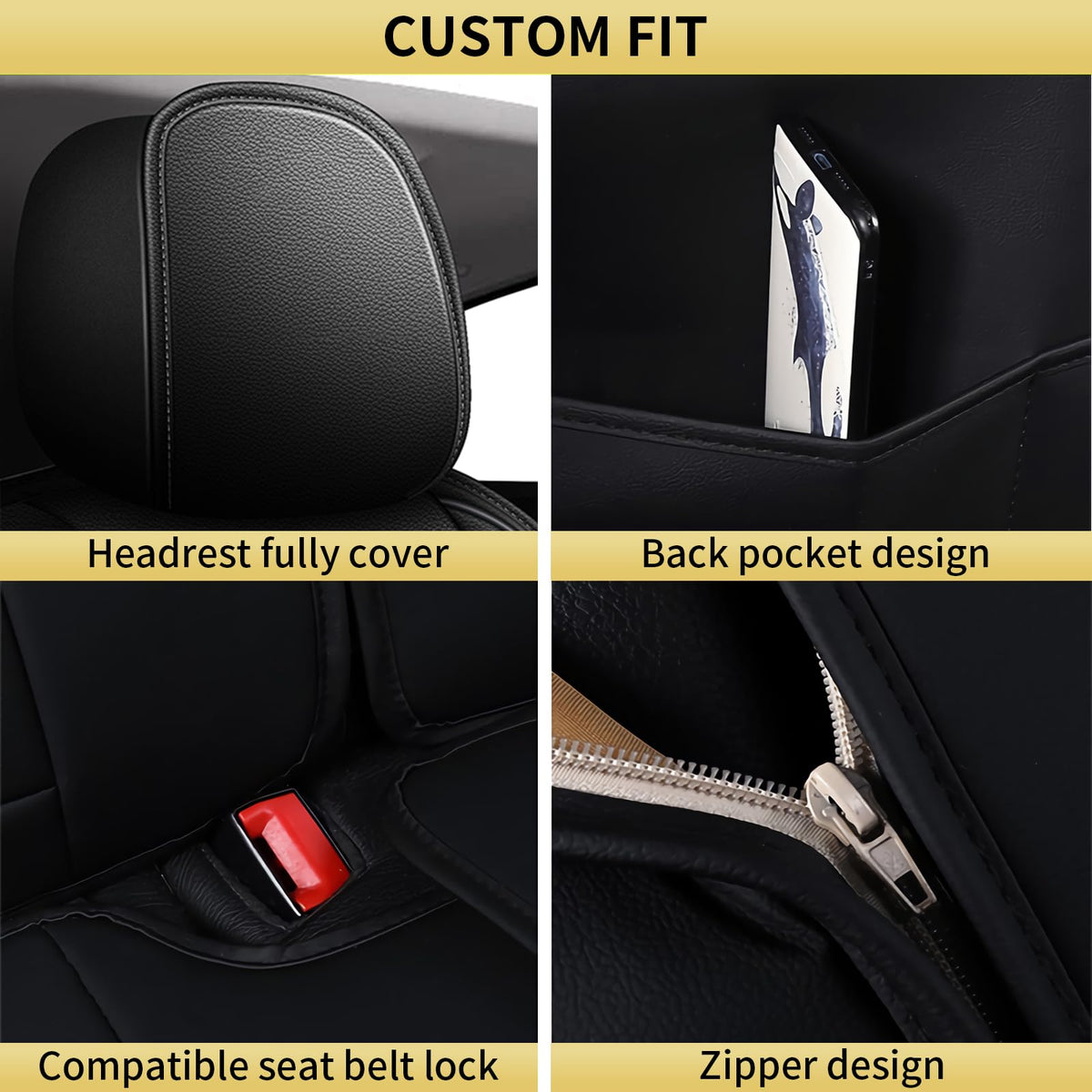 If you are looking for an affordable car seat covers to protect your seat,then this product is what you want. 1. Unique aesthetic design,quilted car seat cover,add new highlights to your car interior. 2. Premium faux leather with thick sponge,soft and comfortable,brings more comfort to your travel. Car Seat Covers Waterproof Faux Leatherette Cushion Cover 1. Waterproof Leather:The premium leather is scratch resistant. Five-layer rebound composite material is soft in touch and environmentally friendly. 2. Strong Safety:The front seat side of the seat cover has an airbag reserved opening to ensure that the airbag can be deployed in an emergency. The seat belt slot of the rear seat is also completely exposed. 3. Clean Easy Easy install:Wipe clean easily with just a damp towel,keeping your seat protects from stains,spills and damage. The package comes with an installation manual,please read it before you start the installation. Package contains: Full Set 5 seats includes:2 * front seat covers, 1 * rear seat cover set, 1 * Installation parts,Install Guide Front Seat 2 seats includes:2 * front seat covers,1 * Installation parts,Install Guide