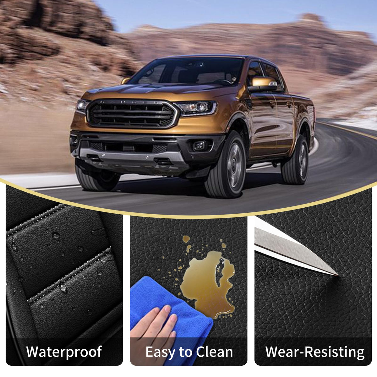 AOMSAZTO Ford Ranger Seat Covers: Front Seat Covers Custom Fit 2019 2020 2021 2022 2023 2024 2025 Ford Ranger XLT/XL/Lariat Wate
