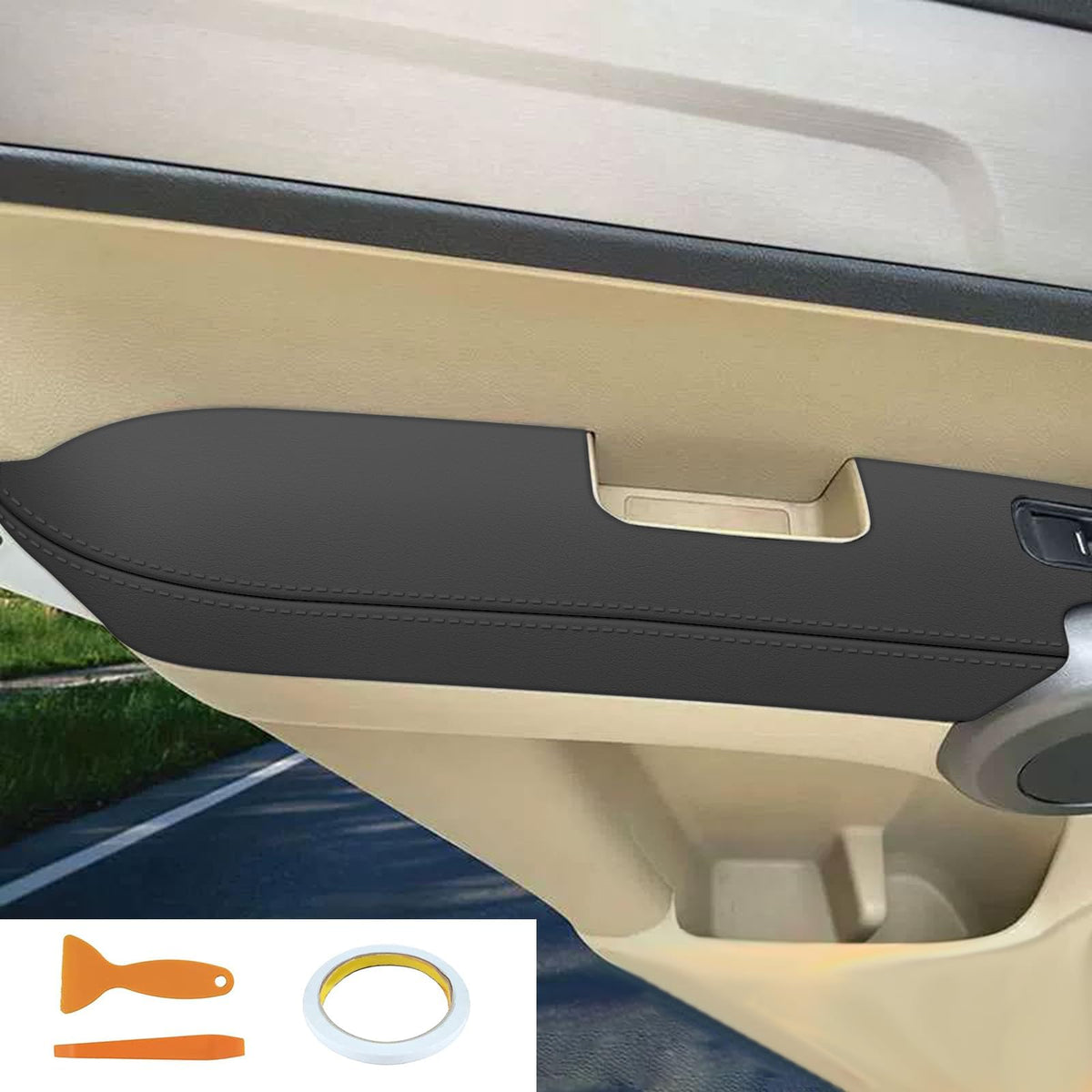 Aomsazto Front Door Panels Armrest Cover Leather Left & Right For Honda Cr-V Crv 2007-2012 (Black)