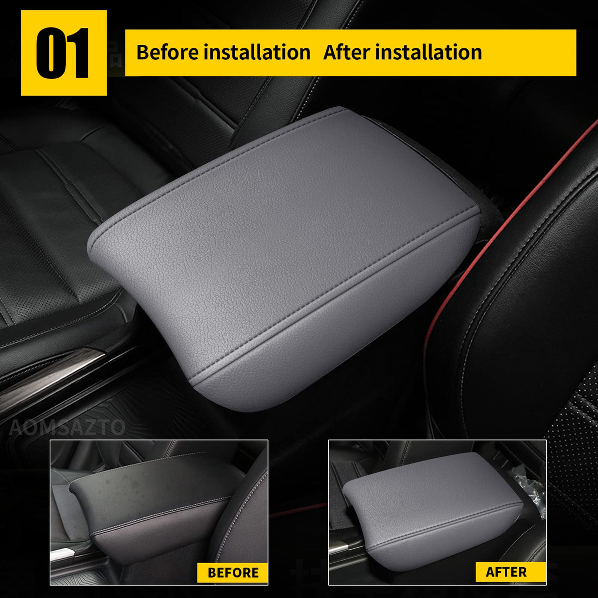 Aomsazto Gray Center Console Covers For 2017-2022 Honda Crv Leather Armrest For Cr V