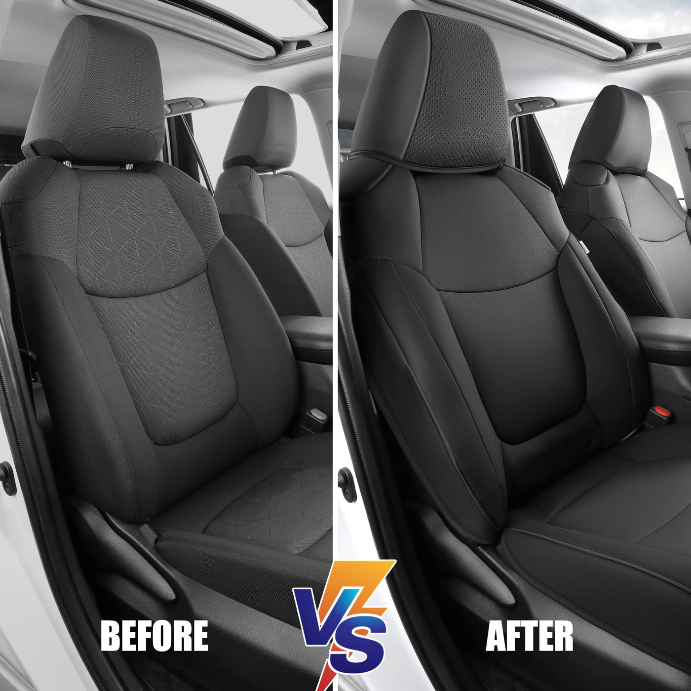 AOOG Leather Car Seat Covers Set for Toyota RAV4 The seat covers will fit the following model: Toyota RAV4 2019/2020/2021/2022/2023 LE Toyota RAV4 2019/2020/2021/2022/2023 XLE Toyota RAV4 2019/2020/2021/2022/2023 XLE Premium Toyota RAV4 2019/2020/2021/2022/2023 Limited Main Features Selected Materials: Premium leather fabric with thick sponge keeps the covers in good shape and provides more comfort. Effective Protection: Use High-quality leatherette as the surface of Cushions, waterproof, wear-resistant and easy to clean, can be cleaned by wet towel. Unique appearance design: the car seat is visually a pleasure, and it is very practical to use, adds a splash of color to your car interior. Easy to install: We provide installation manual and installation video (recommended to watch the video). Follow our simple step-by-step installation process, it only takes 25 minutes to complete without any tools. Tips 1. Airbag and seat belt compatible. 2. Not suitable for machine washing. 3. Not suitable for non-split headrest seats. 4. Not suitable for seats with built-in seat belt buckle. 5. Not suitable for seats with steep shoulder.