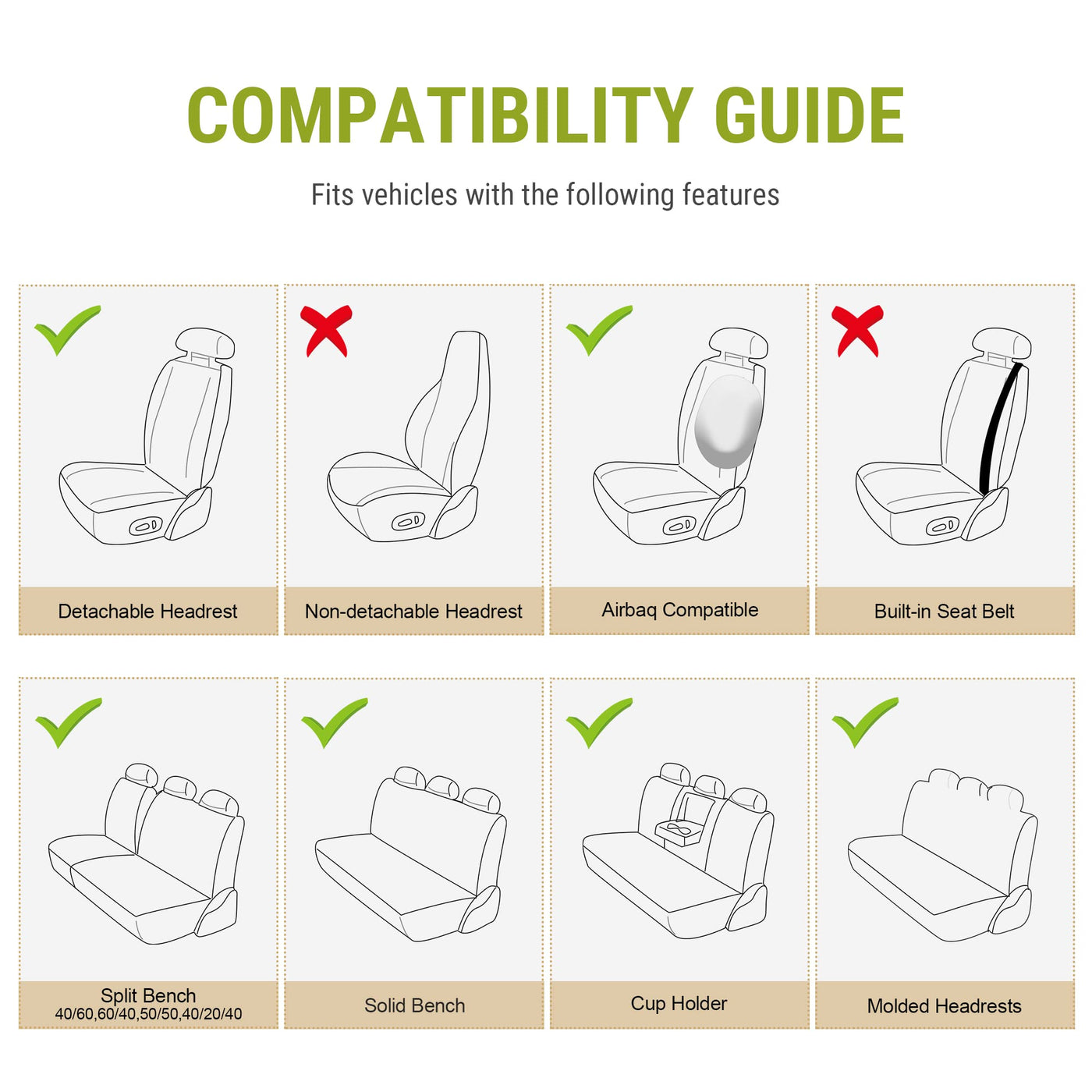 Q: What type of vehicles are compatible with the AOOG Leather Car Seat Covers?A: The AOOG Leather Car Seat Covers are designed to fit approximately 90% of vehicles, including cars, trucks, vans, and SUVs. For specific compatibility, please refer to the applicable models listed in the product images.