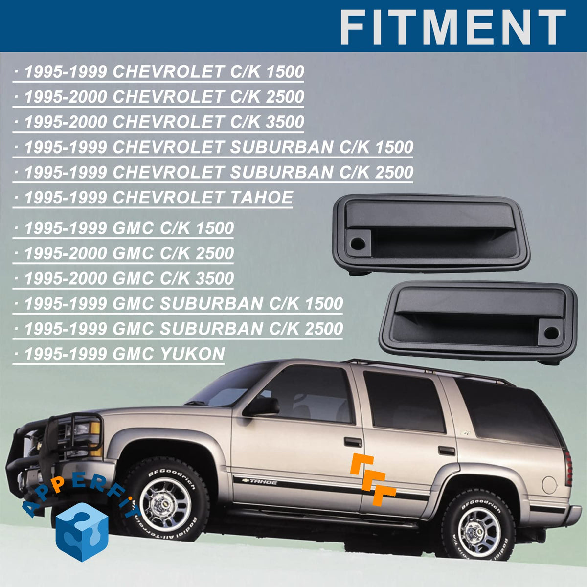 Q: Is the APPERFiT All Metal Exterior Door Handle compatible with my 1997 Chevrolet Tahoe?A: Yes, the APPERFiT All Metal Exterior Door Handle is specifically designed to be compatible with a range of models, including the 1995-2000 Chevrolet Tahoe.