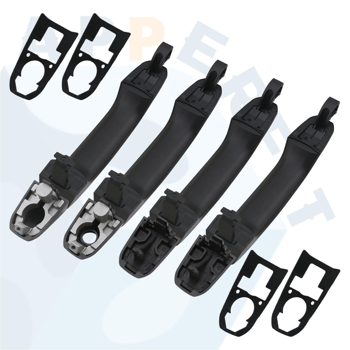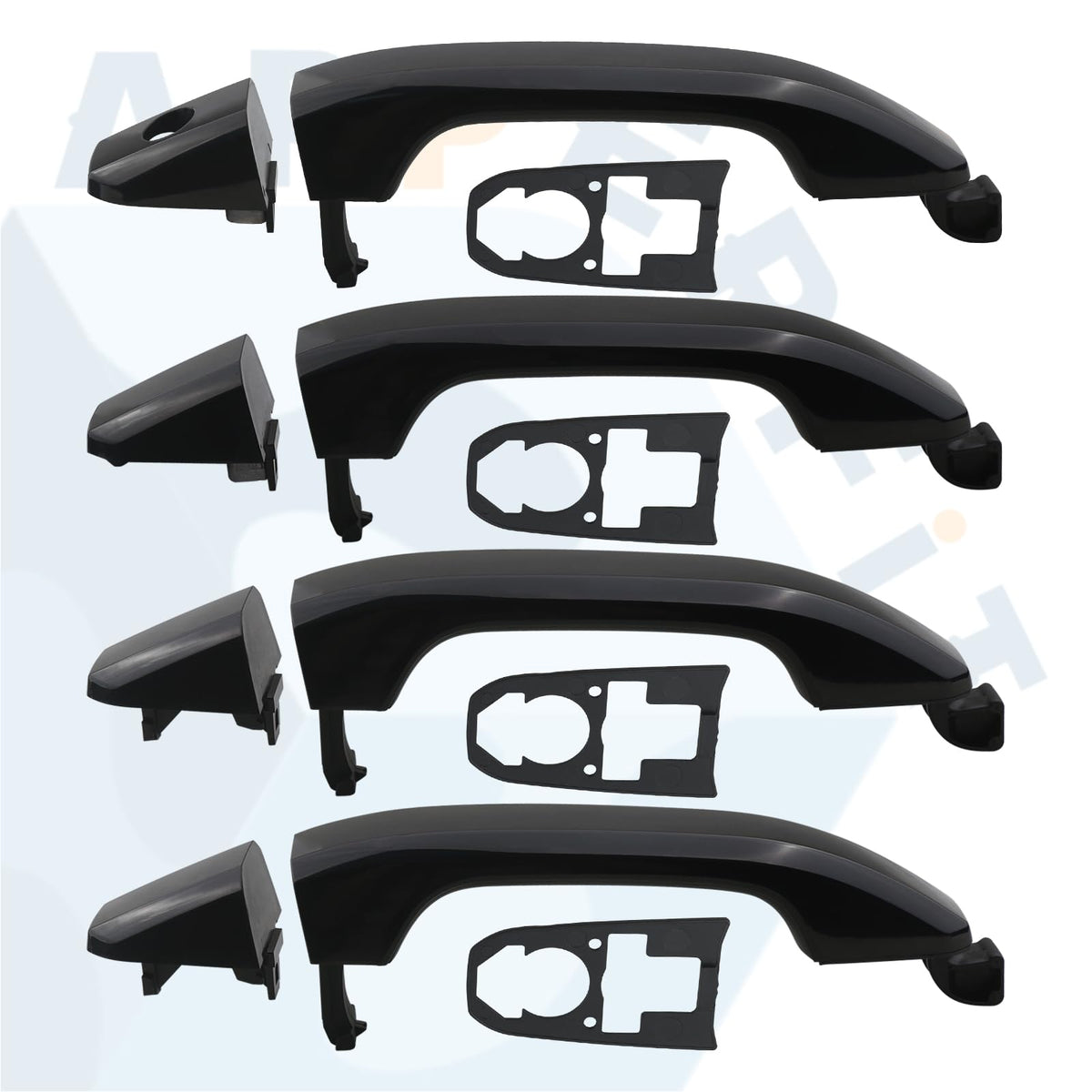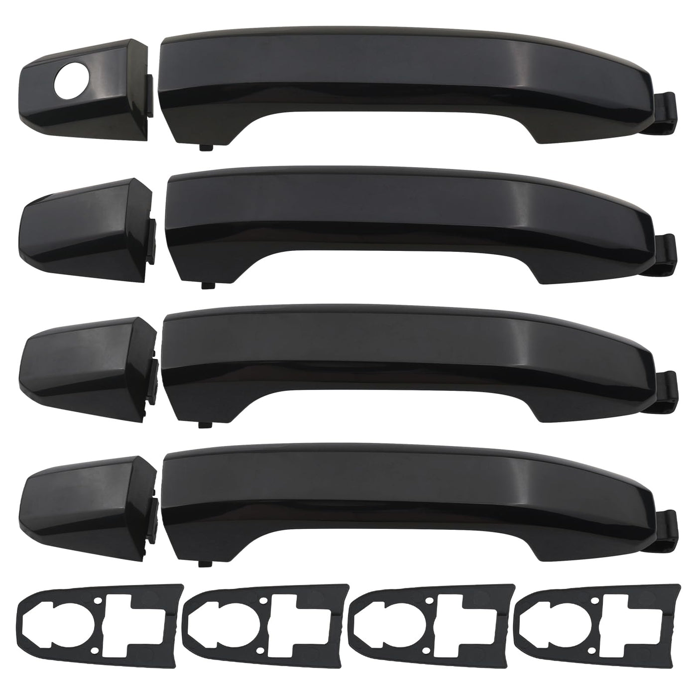 APPERFiT Door Handles w/Gaskets Set - Exterior (Smooth Black) Paint to Match Compatible with 2014-2020 Chevy Chevrolet Silverado