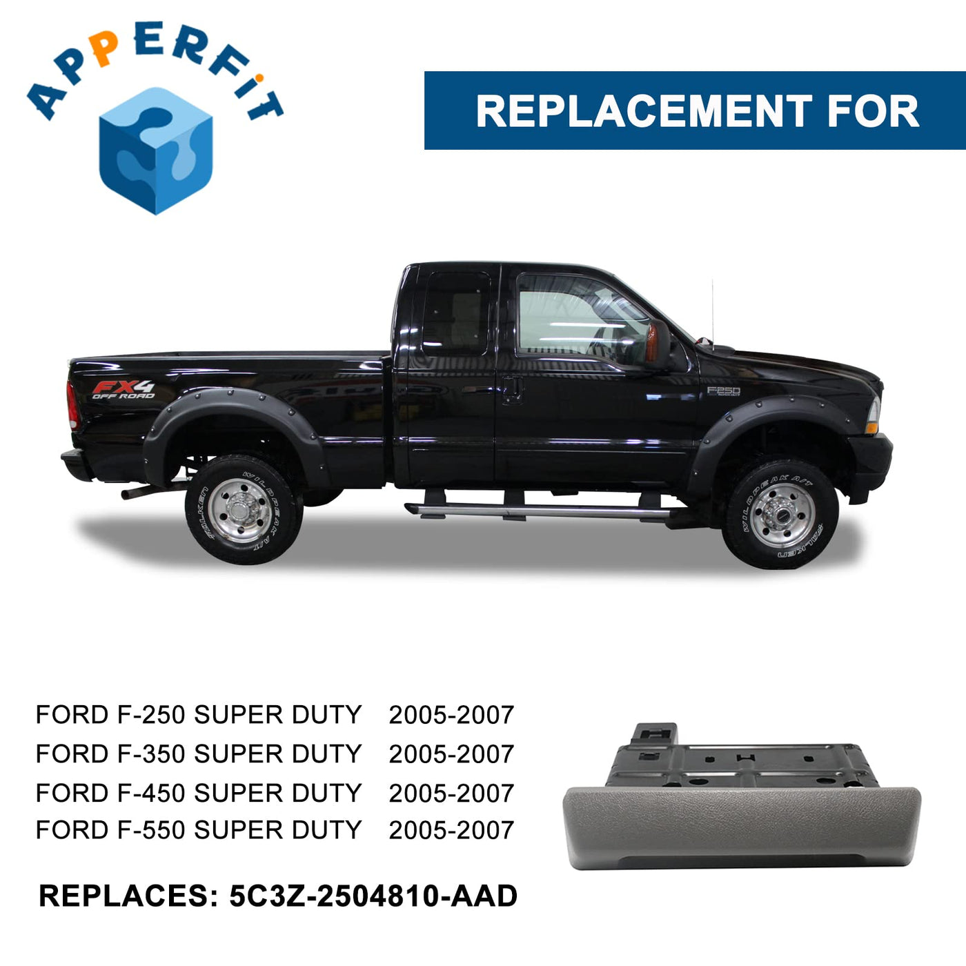 Apperfit In Dash Cup Holder Replacement For 2005-2007 Ford F250 F350 F450 F550 Super Duty Truck Gray Replaces 5C3Z-2504810-Aad
