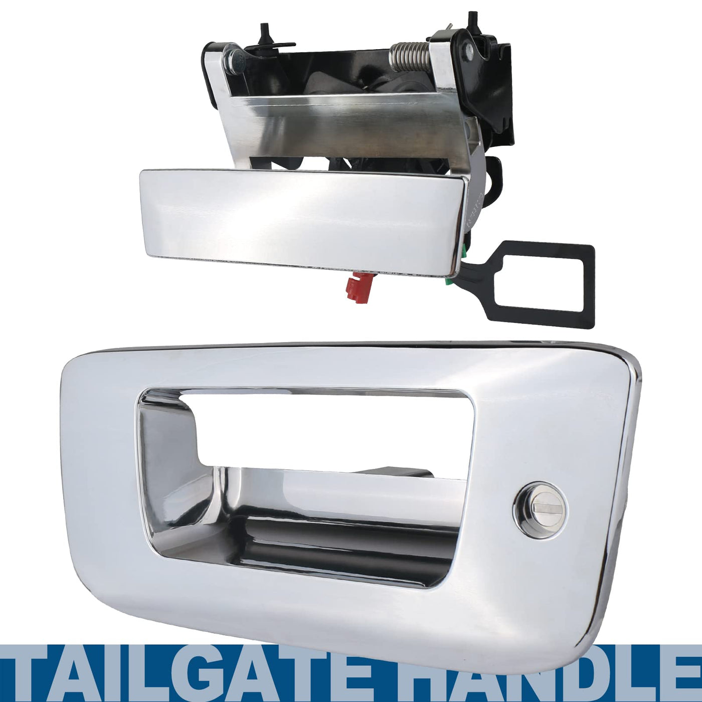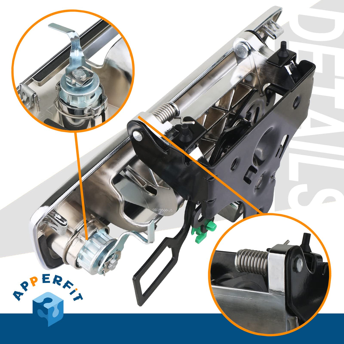 APPERFiT Locking Tailgate Handle Latch w/Bezel & Lock Cylinder & Keys 22755305 Chrome Compatible with 2007-2014 Chevrolet Chevy