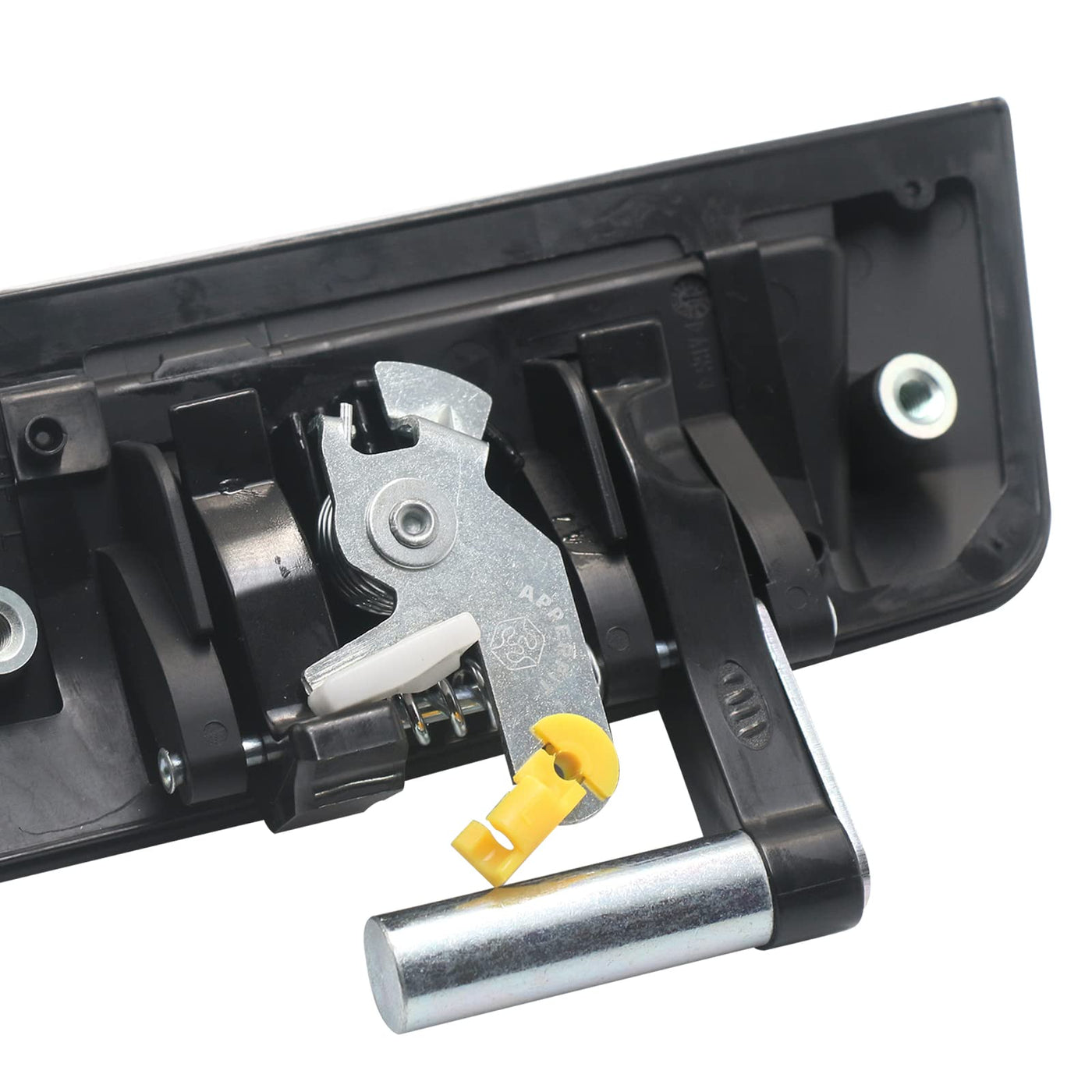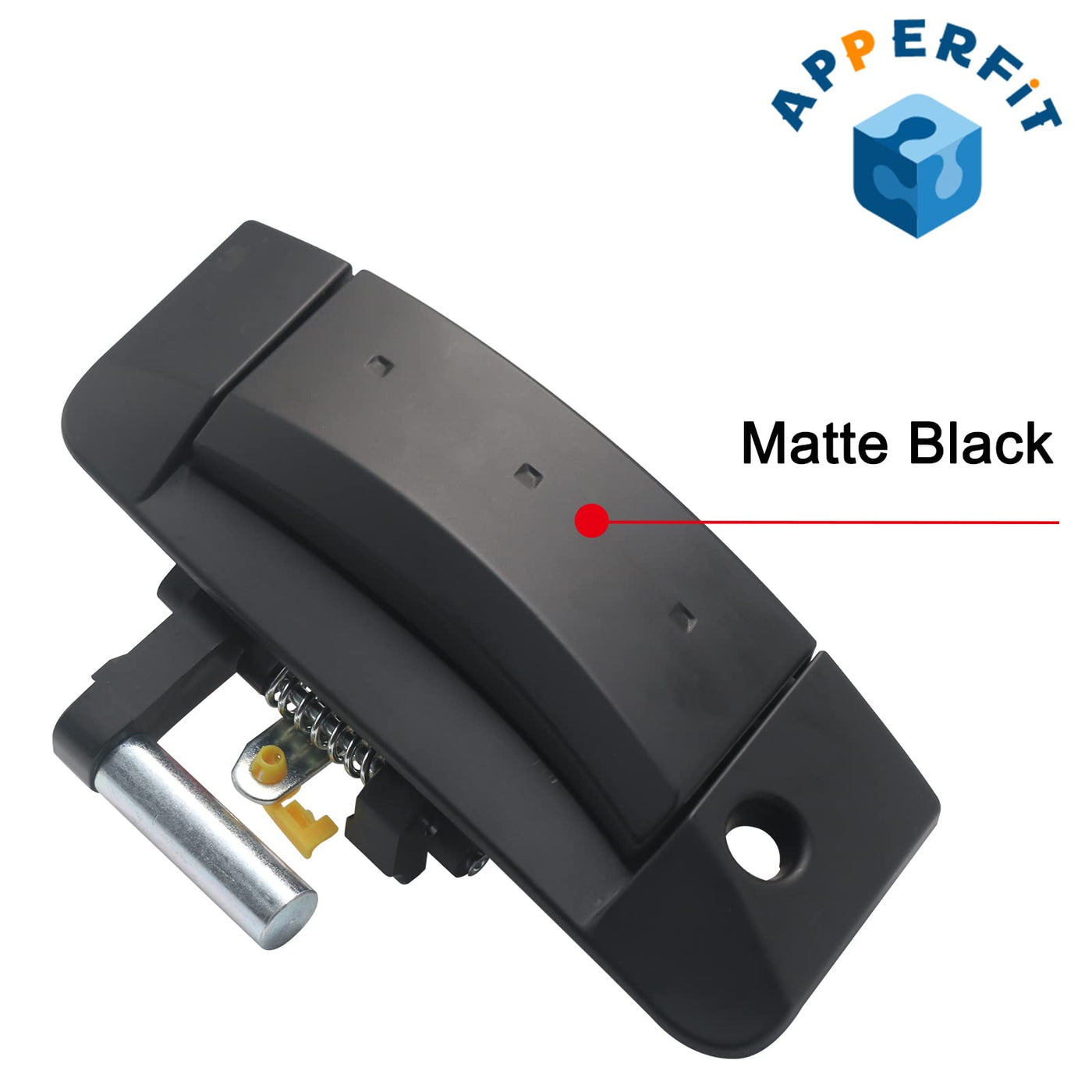 Q: What material is the APERFiT Exterior Door Handle made from?A: The APERFiT Exterior Door Handle is made from high-quality plastic that features a matte black finish, providing durability and a premium look without the cheap plastic feel.