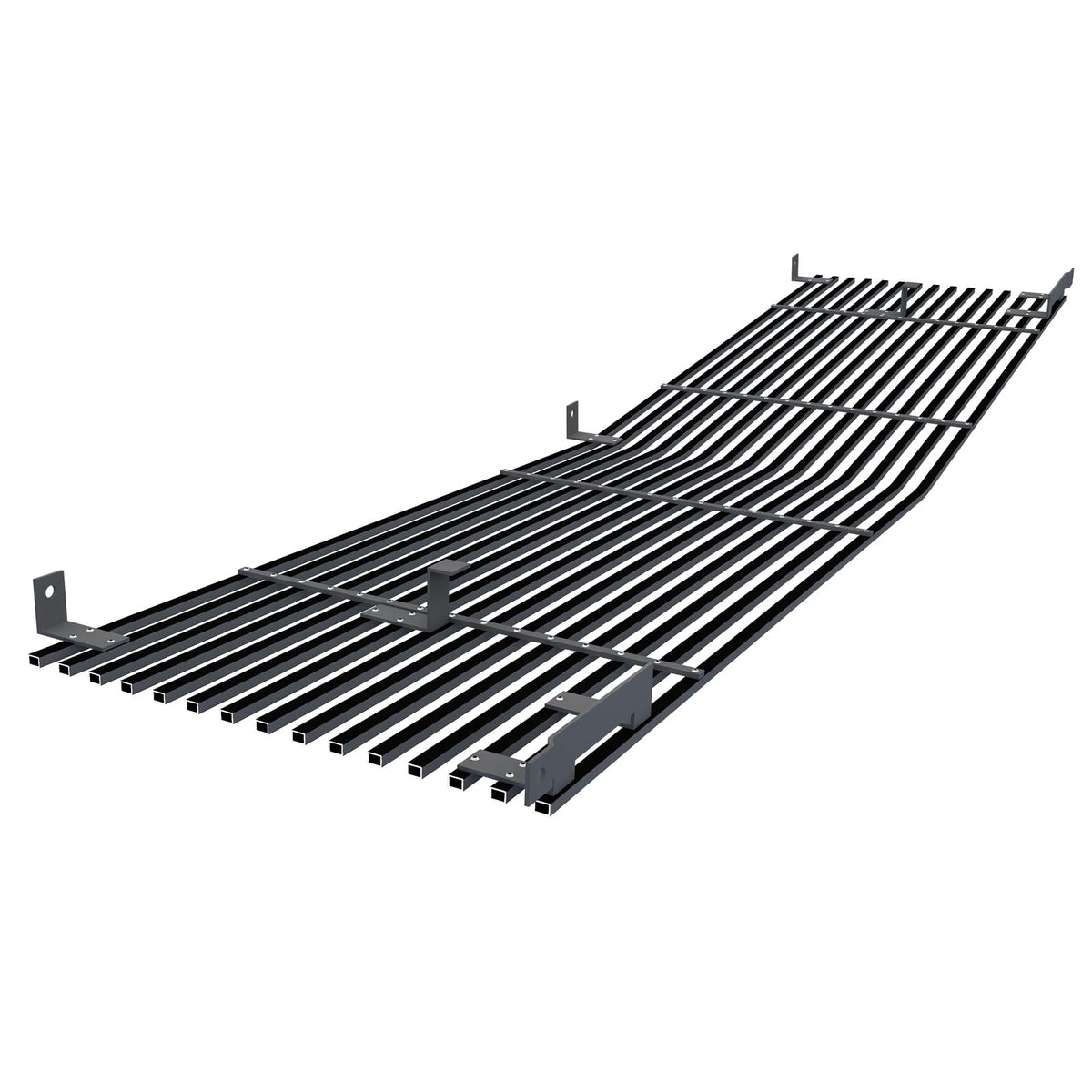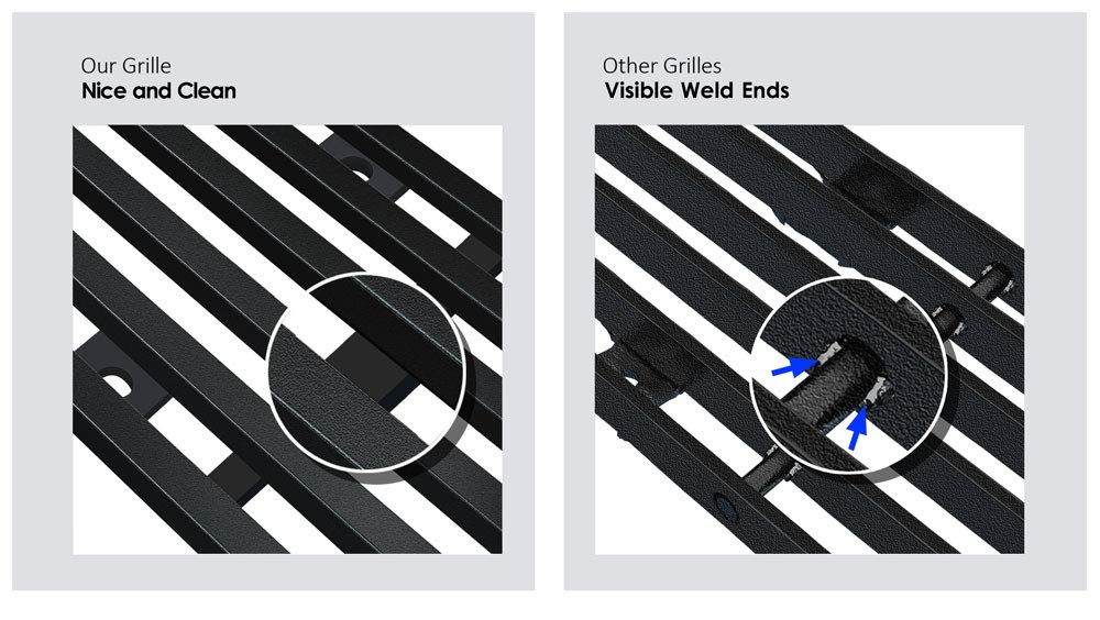 Q: What material is the grille insert made from?A: The grille insert is made from premium stainless steel, which is durable and features a black powder-coated surface for enhanced resistance to oxidization.