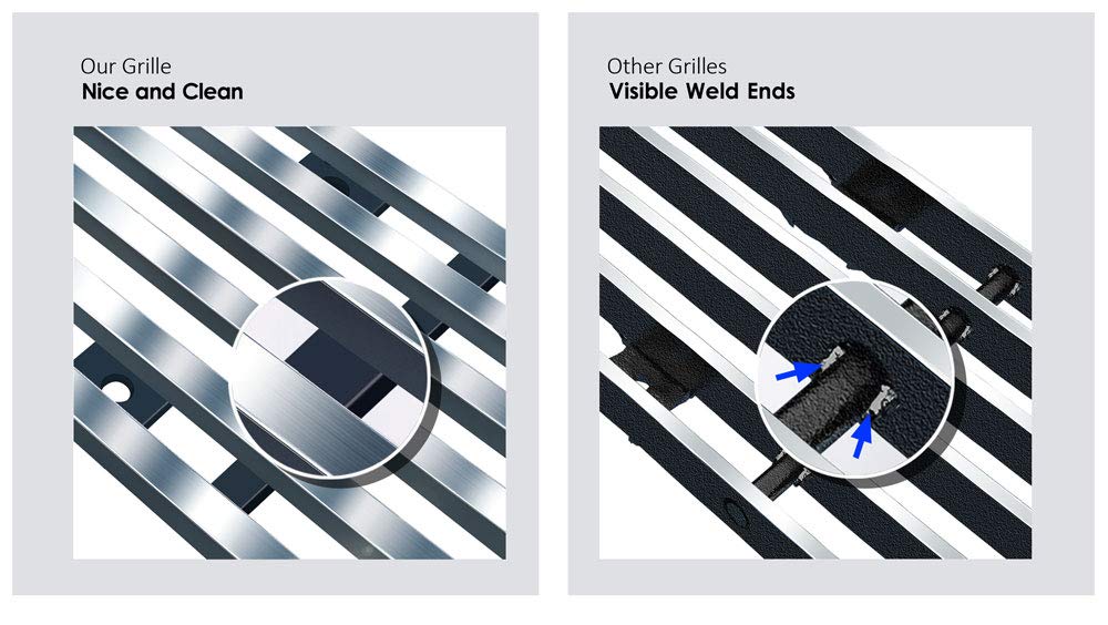 Q: How can I maintain the appearance of my stainless steel grille insert?A: To maintain the appearance of your stainless steel grille insert, regularly clean it with mild soap and water. Avoid abrasive cleaners that can scratch the surface. This will help preserve the black powder coated finish and keep your grille looking new.