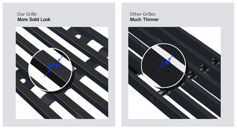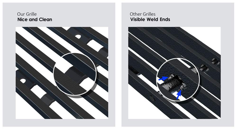 Q: What materials are used in the construction of this grille?A: The grille is made from premium stainless steel with a black powder-coated finish, providing durability and resistance to oxidization.