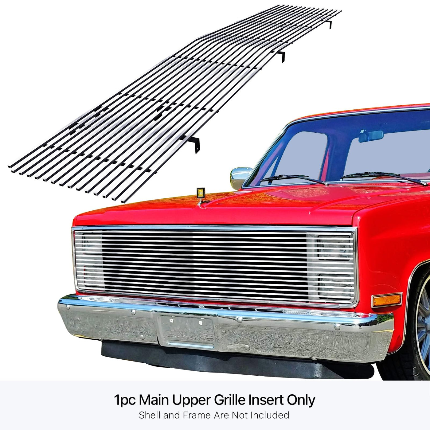 Fitment* Compatible With Chevy Blazer 1981-1988 (Phantom Style With Stacked Lights) * Compatible With Chevy C/K Pickup 1981-1987 (Phantom Style With Stacked Lights)* Compatible With Chevy Suburban 1981-1988 (Phantom Style With Stacked Lights)* Compatible With Gmc C/K Pickup 1981-1987 (Phantom Style With Stacked Lights)* Compatible With Gmc Jimmy 1981-1988 (Phantom Style With Stacked Lights)* Compatible With Gmc Suburban 1981-1988 (Phantom Style With Stacked Lights)Package Contentthis Item Includes 1 Pc Replacement (Cutting Required) 8X6 Horizontal Billet Grill Insert With Polished Surface Finish, Along With Mounting Hardware And Installation Manual. Please Note The Material Is Stainless Steel And Color Is Chrome.