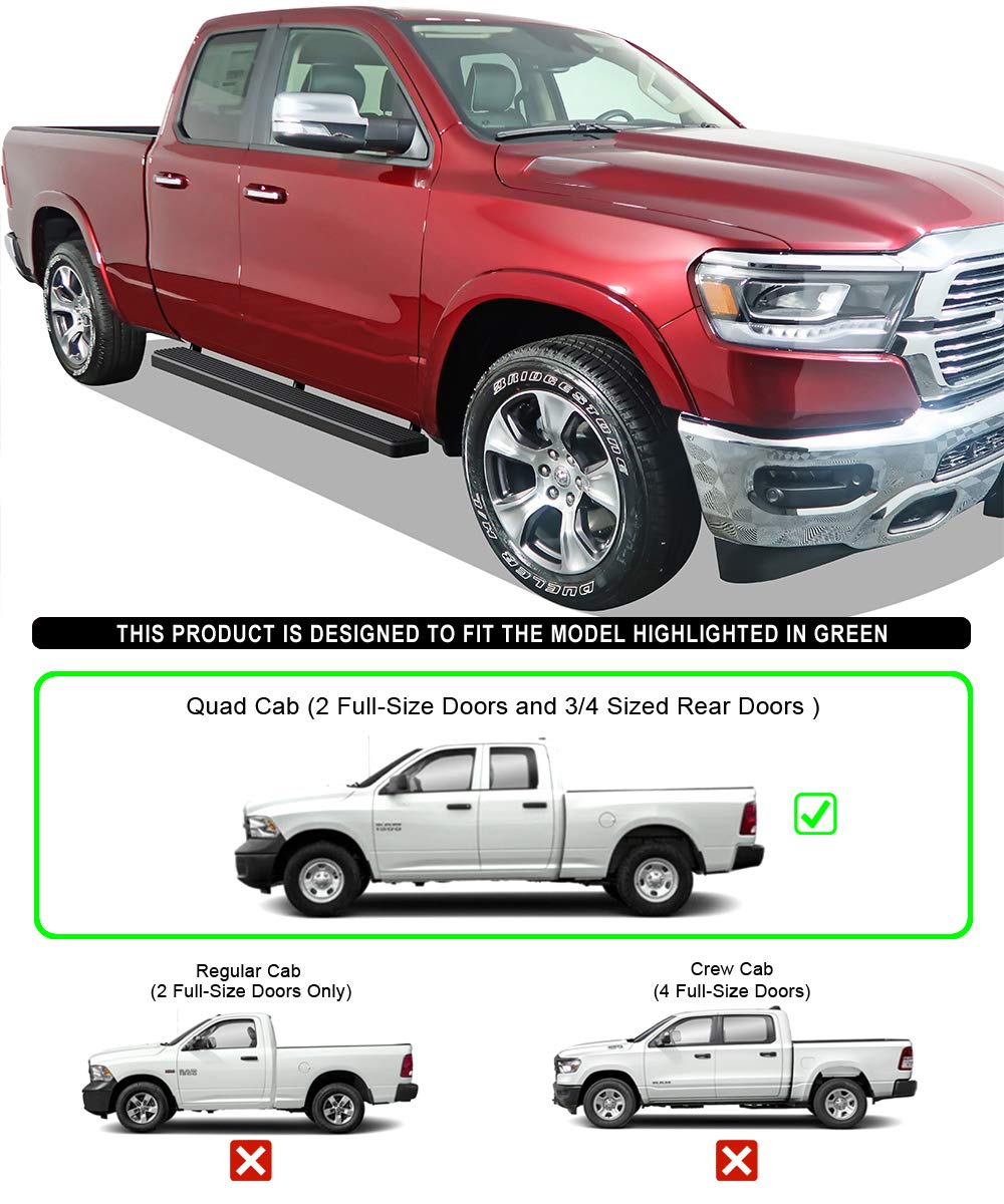 Fitment Compatible With Dodge Ram 1500 2019-2024 Extended Cab Compatible With Ram 1500 2019-2024 Extended Cab For New Body Style Only (Excl. 19-24 1500 Classic Body Style)Package Content Iboard, By Aps Is A New Generation Of Running Boards Designed To Look And Feel Different. Most Running Boards In The Market Are Round Or Oval. Iboard'S Flat Profile Design Is Clean And Modern - Giving Your Truck A Truly Distinct Look.