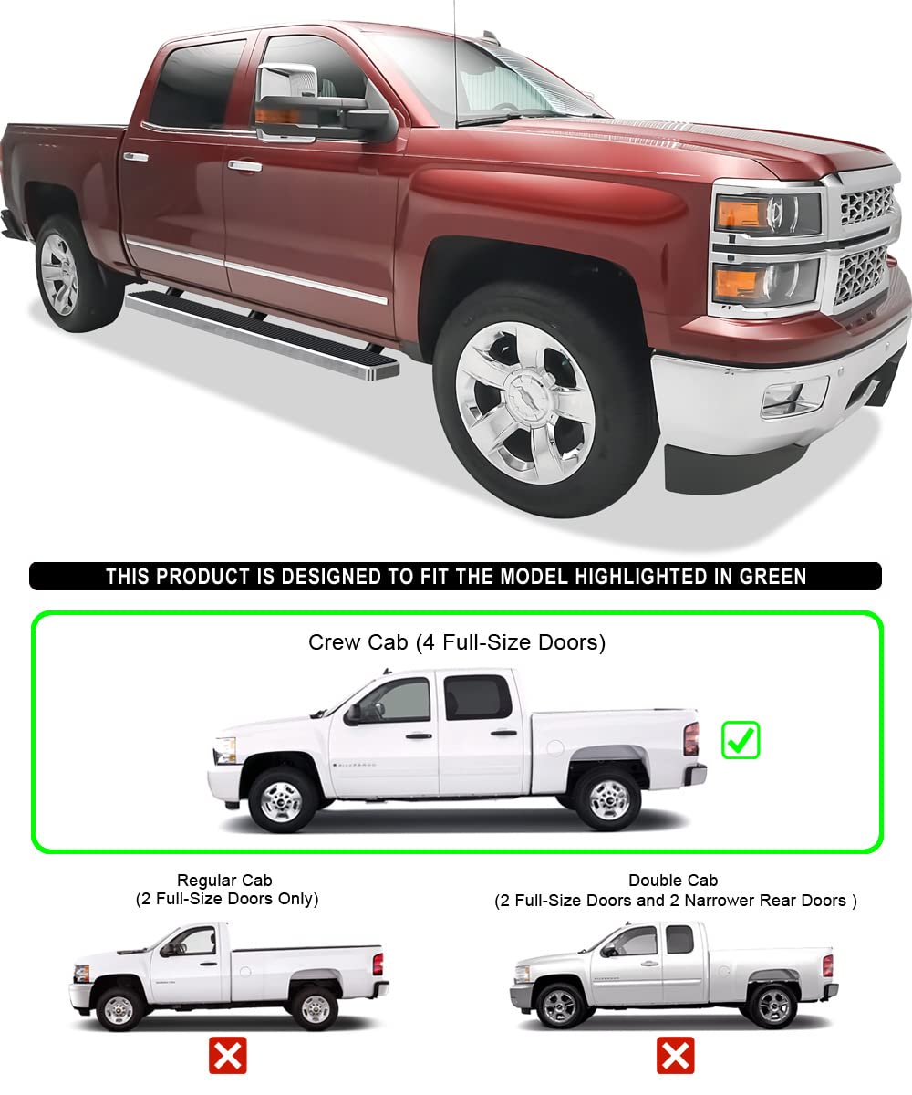 APS Running Boards (Nerf Bars Steps) Compatible with Chevy Silverado GMC Sierra 1500 2001-2013 Crew Cab & 2500 3500 2001-2014 (E