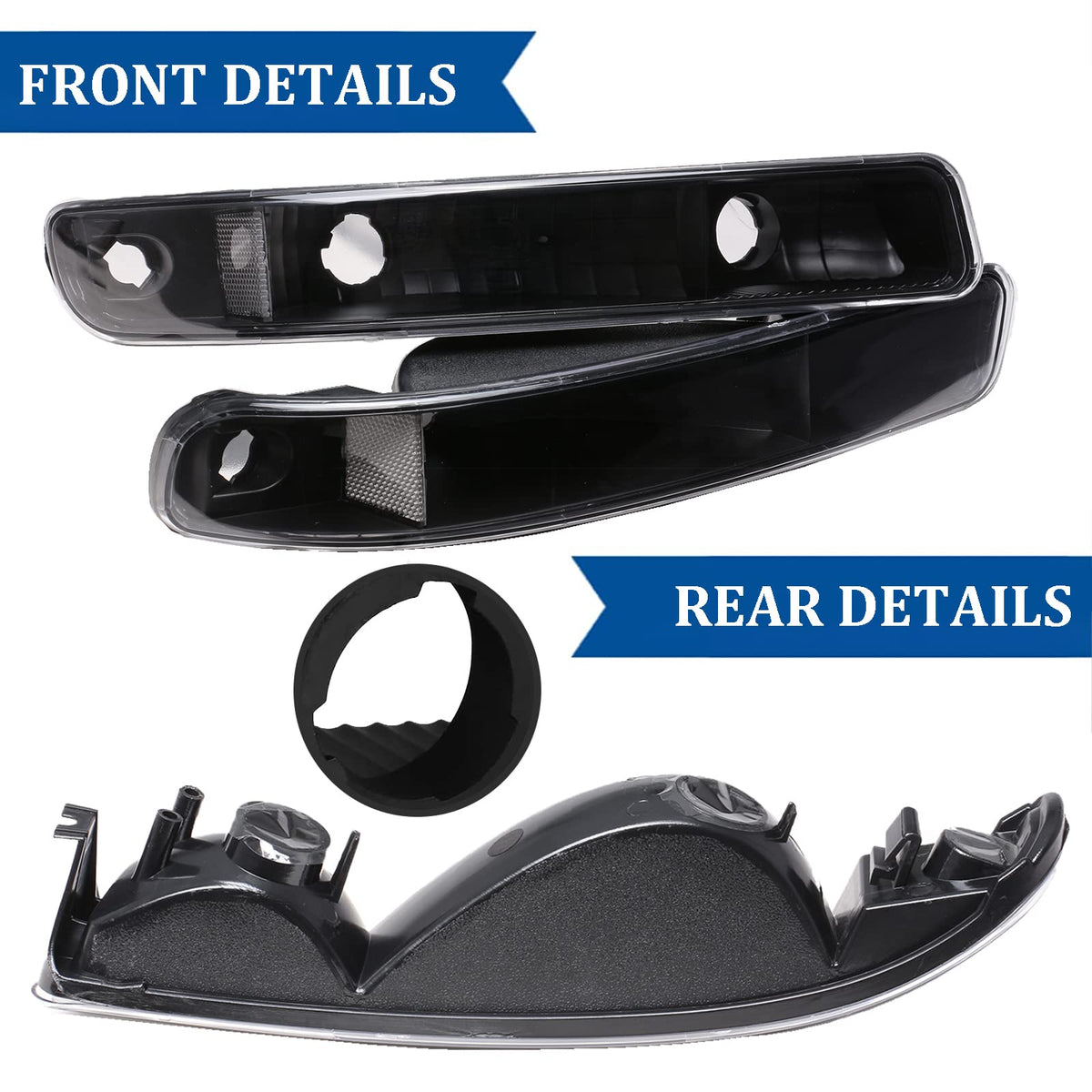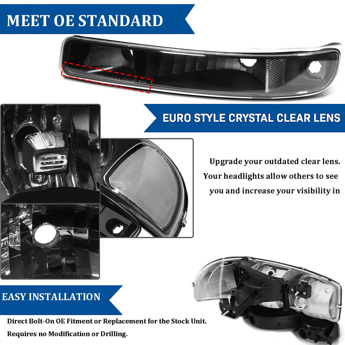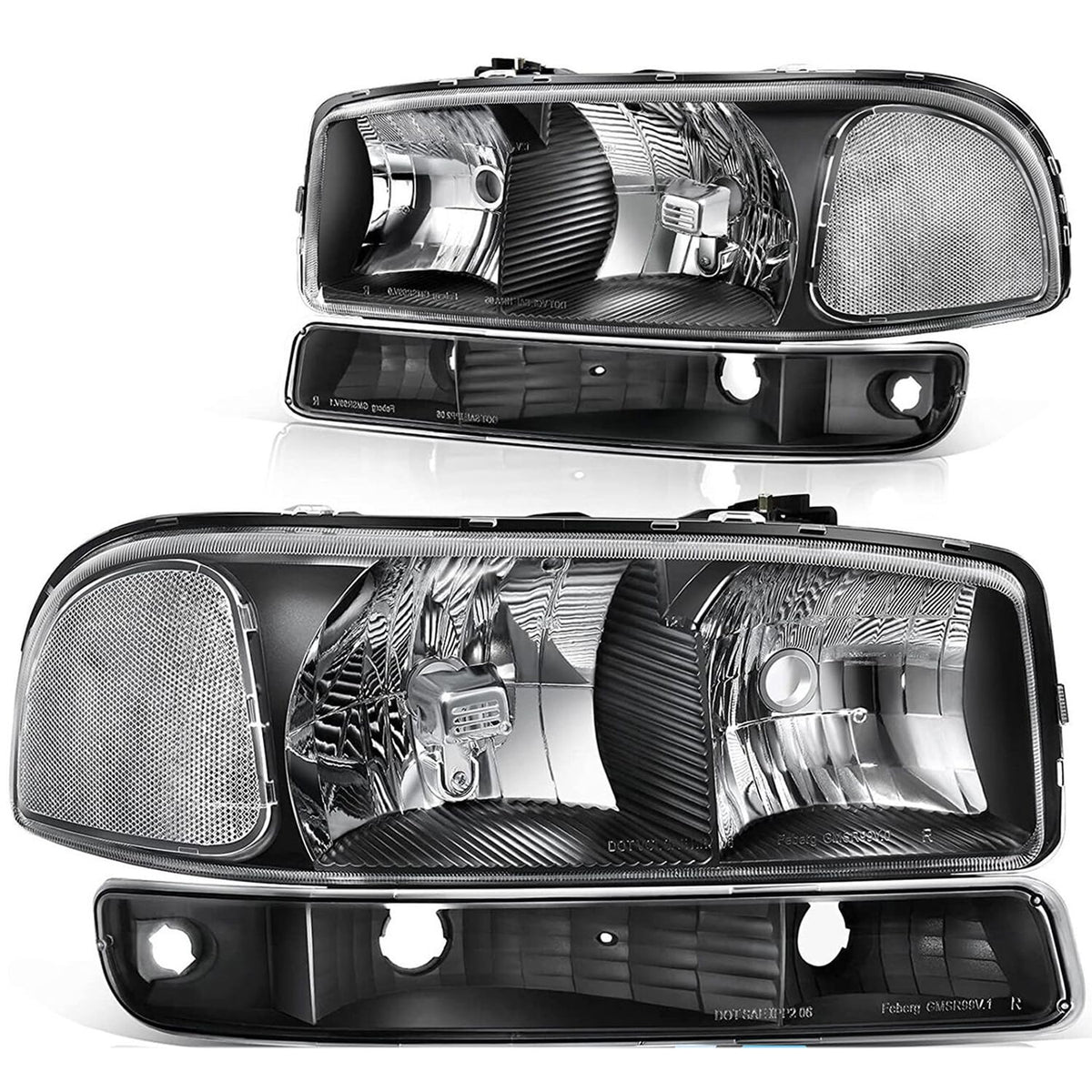 Apsve Headlight Assembly For 99-07 Gmc Sierra 1500, 99-04 Sierra 2500, 01-07 Sierra 1500Hd 2500Hd 3500Hd, 99-06 Yukon, 00-06 Yukon Xl 1500 2500 Headlights W/Bumper Signal Lamps, Black