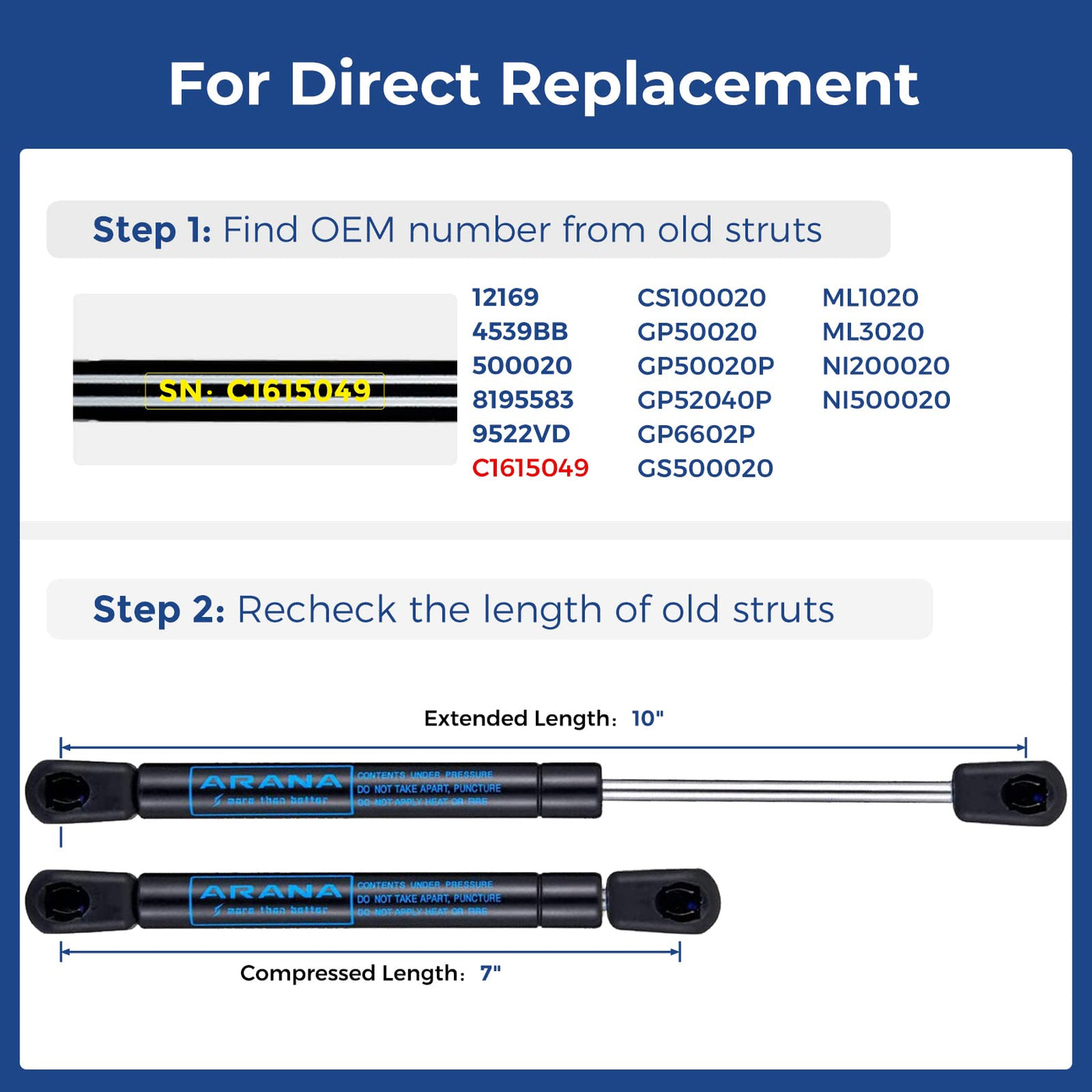 ARANA 10 inch 20LB/89N Gas Strut Shocks Lift Supports for Ranger Boat Hatch Boat Rod Locker Cooler Snap Box RV Cabinet Door Caml