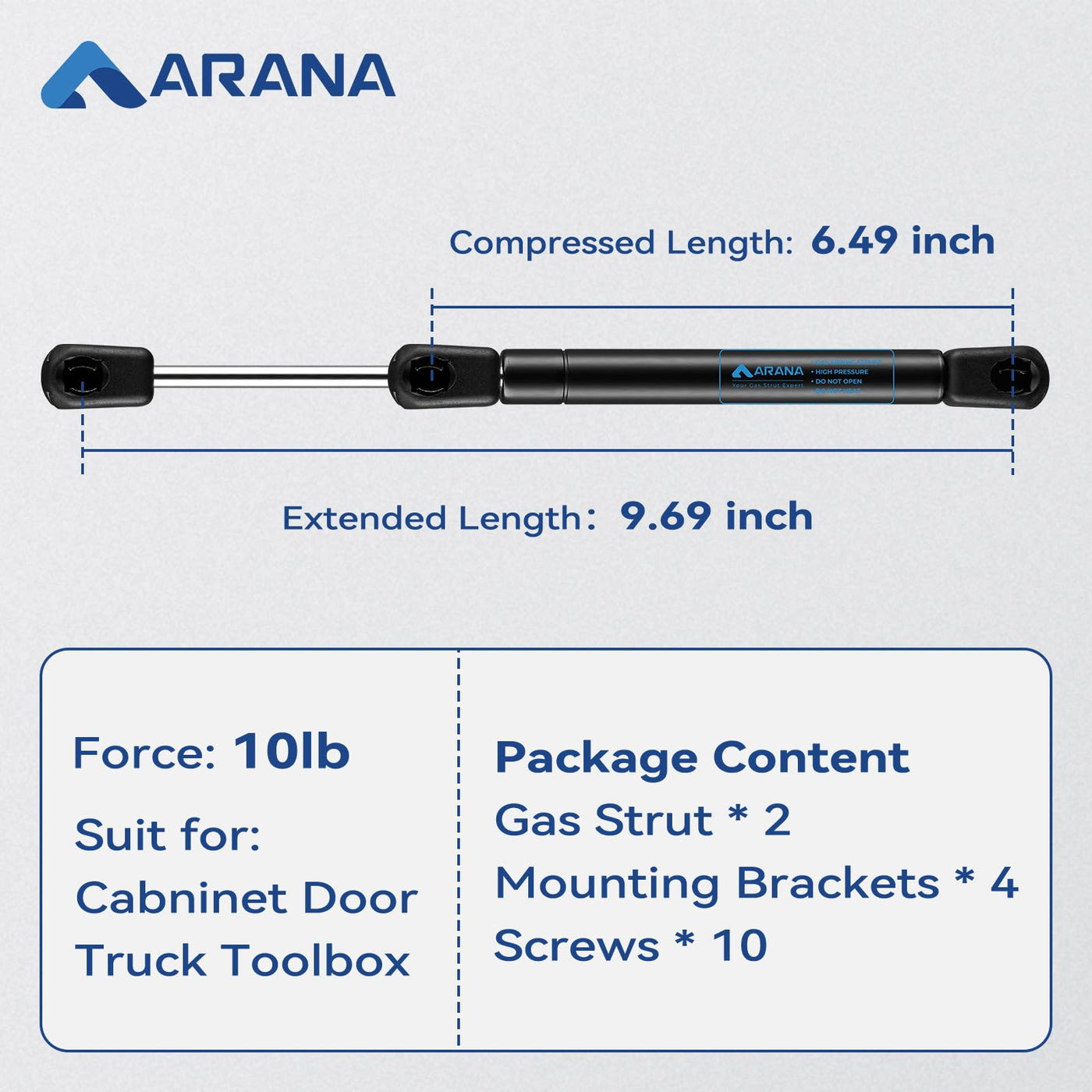 ARANA 10 Inch Gas Struts10 Lb/45 N, Gas Shocks Spring 10'', Tool Box Strut for Cabinets Truck Toolbox Boat Lid Lift Support