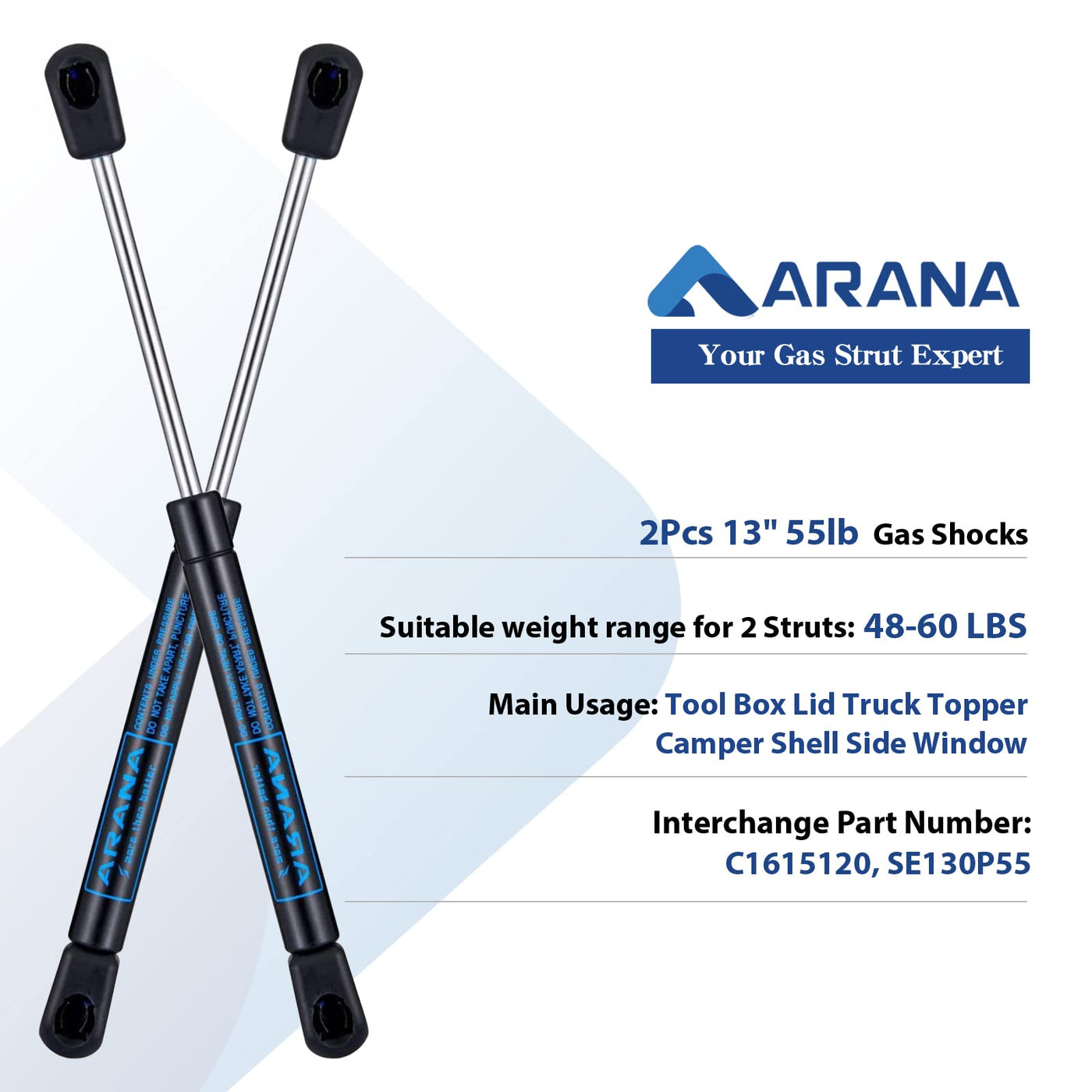 Arana 1015903 13 Inch 55Lb Gas Spring Struts, C1615120 13 '' 245N Shocks Lift Support For Tool Box Lid Truck Topper Camper Shell