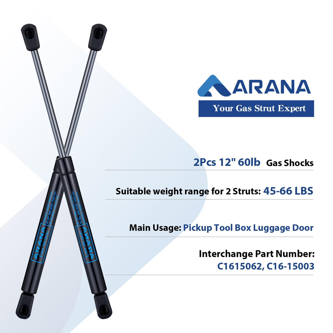 Arana 12 Inch 60Lb Gas Struts Spring Shocks C1615003 12 Inch Lift Support For Pickup Truck Toolbox Lid Luggage Door Camper Shell