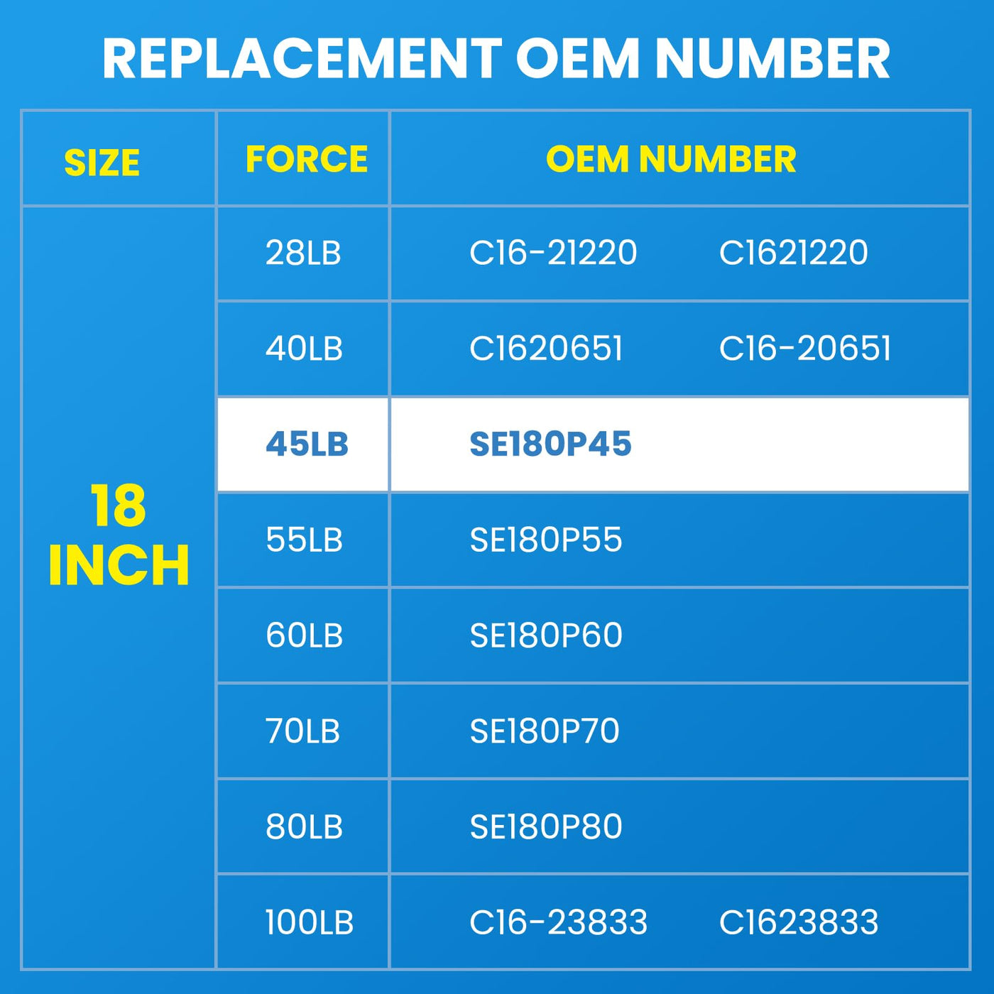 ARANA 18 inch 45 LB Gas Struts Spring Shocks SE180P45 18 '' Lift Support for A.R.E Truck Cap Topper Leer Camper Shell Window Snugtop Canopy Storage Tool Box Lid Replacement Parts, 2 Pcs