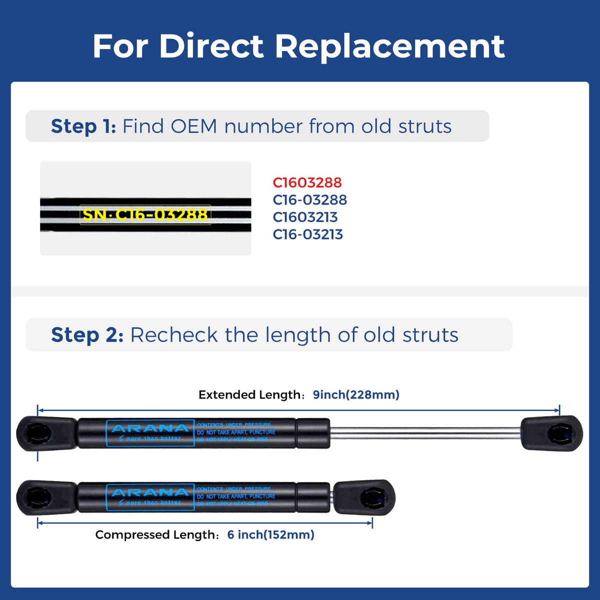 ARANA C16-03288 9 inch 13 Lb/58N Gas Struts Spring Shocks C1603288 9 inch 13Lb Lift Support for Tool Box Lid Truck Toolbox Cabin