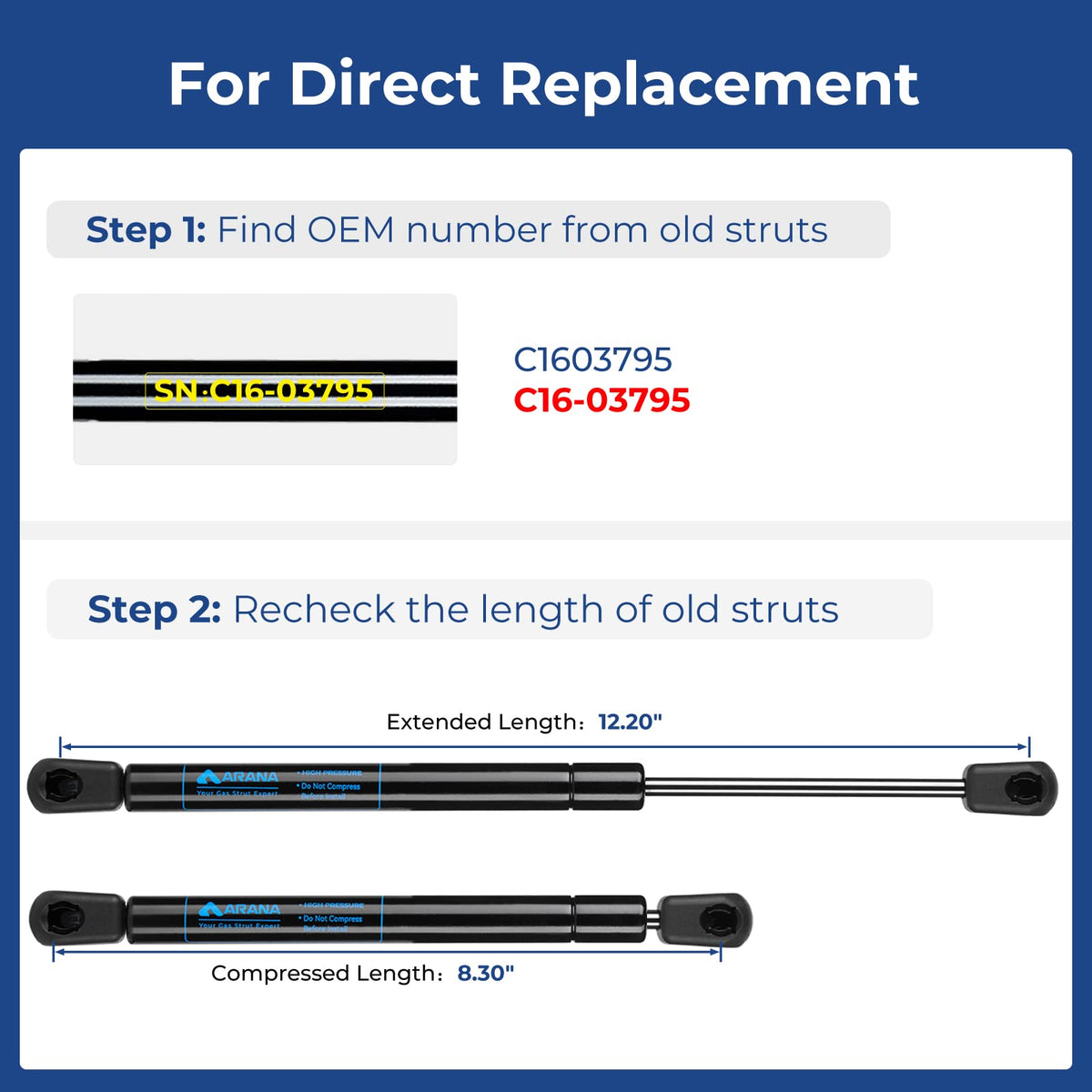 Arana C16-03795 Gas Struts 12 Inch, C16-09903 12 Inch 24Lb/107N Gas Shock Spring Lift Supports For Leer Are Camper Shell Topper