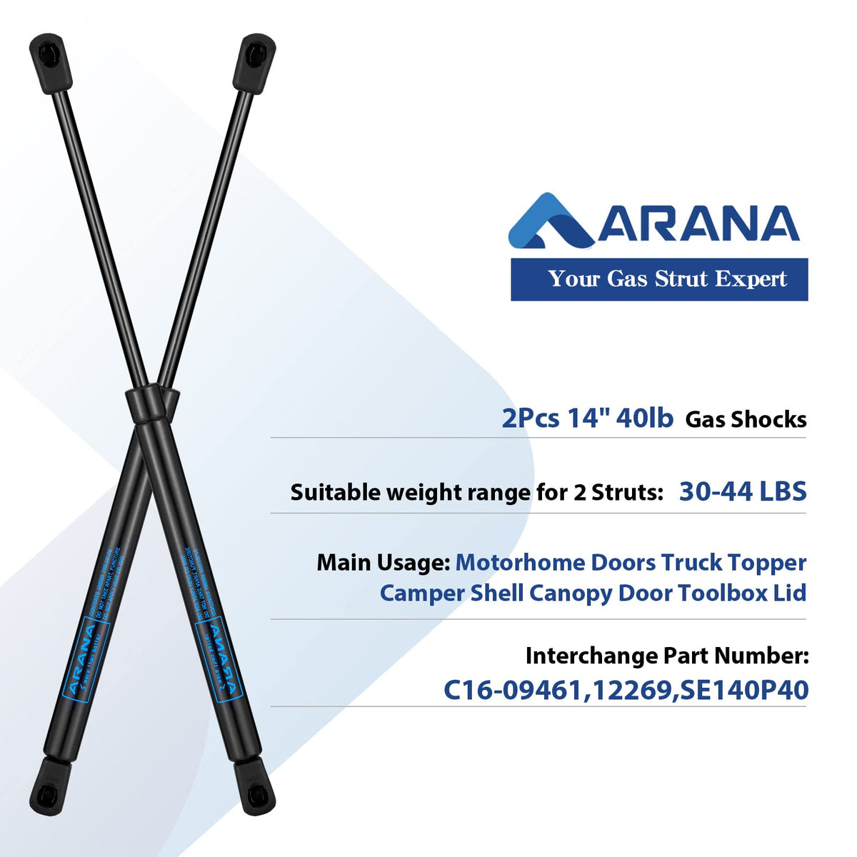 Arana C16-09461 14 Inch 40Lb/178N Gas Struts Spring Shocks, Sl-14-40 14 '' 40 Pounds Lift Support For Truck Topper Rear Window L