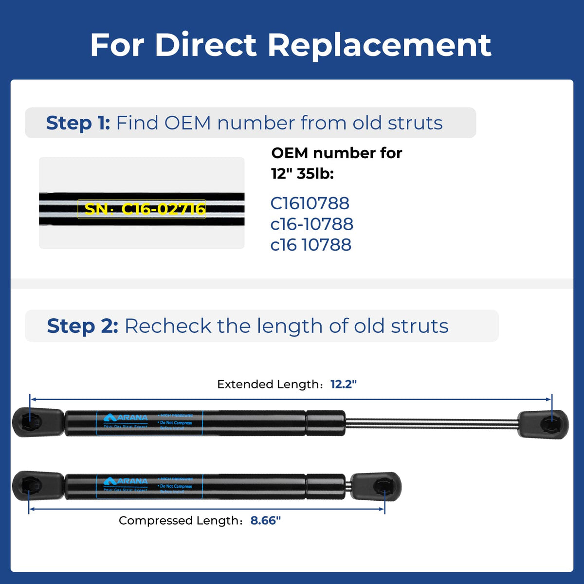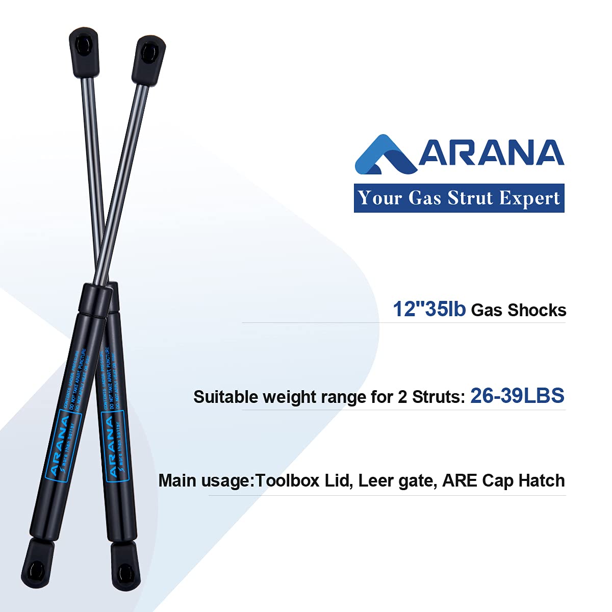 Arana C16-10788 12 Inch 35Lb Gas Struts Spring Shocks C1610788 12 '' 35 Pound Lift Support For Truck Toolbox A.R.E. Camper Shell