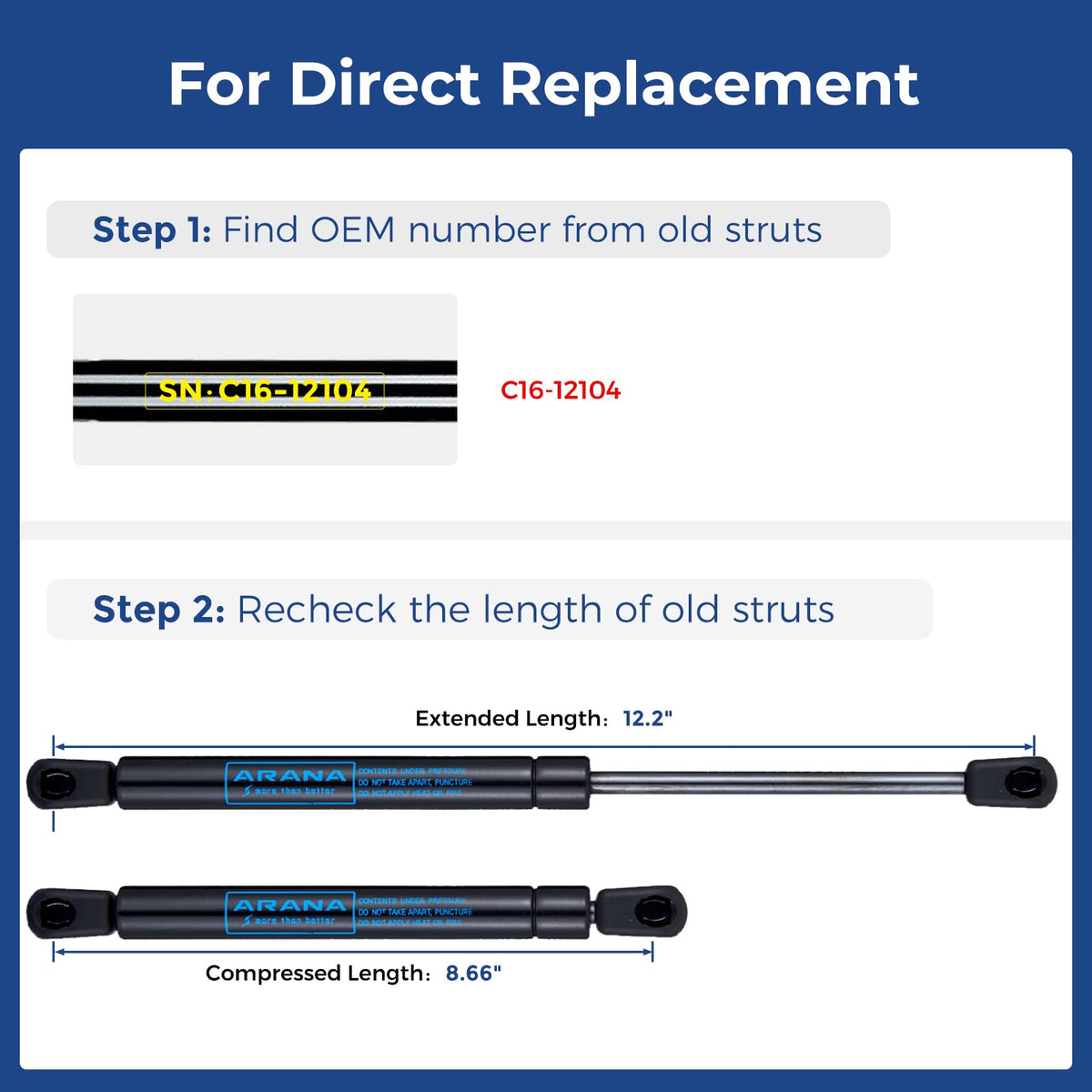 Arana C16-12104 12 Inch 50 Lbs Gas Prop Struts Shocks 12 '' 50Lb Lift Support For Are Topper Camper Shell Truck Tool Box Lid Tru