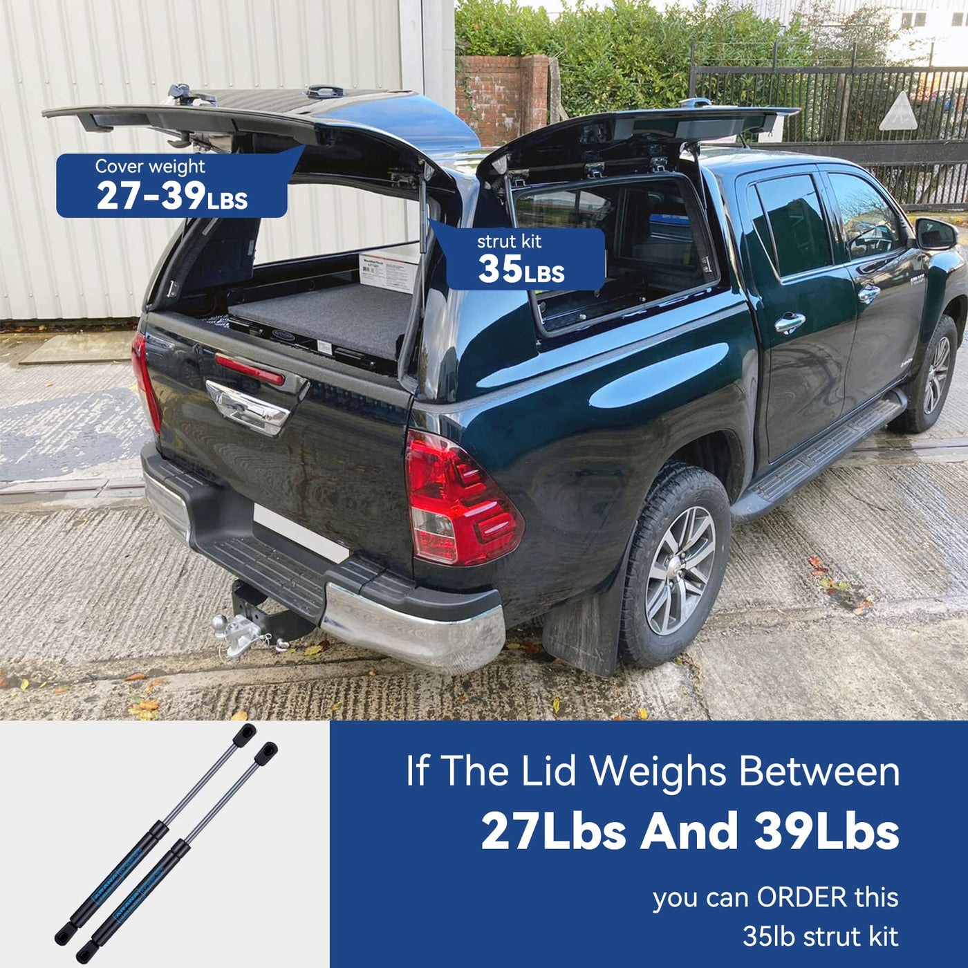 Please ensure the size length of the lid (installed with struts) is 16 inches at least for ARANA 23 inch shocks;