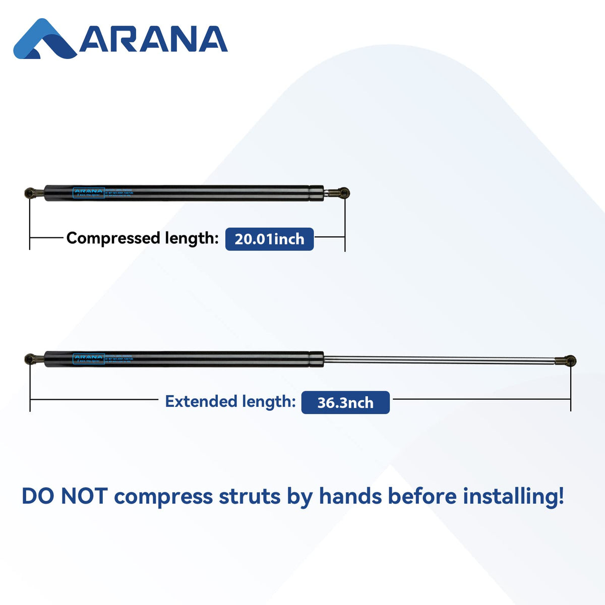 Q: Can I compress these gas struts before installation?A: No, the ARANA gas struts cannot be compressed until they are installed. Attempting to compress them by hand or body before installation may damage the struts.