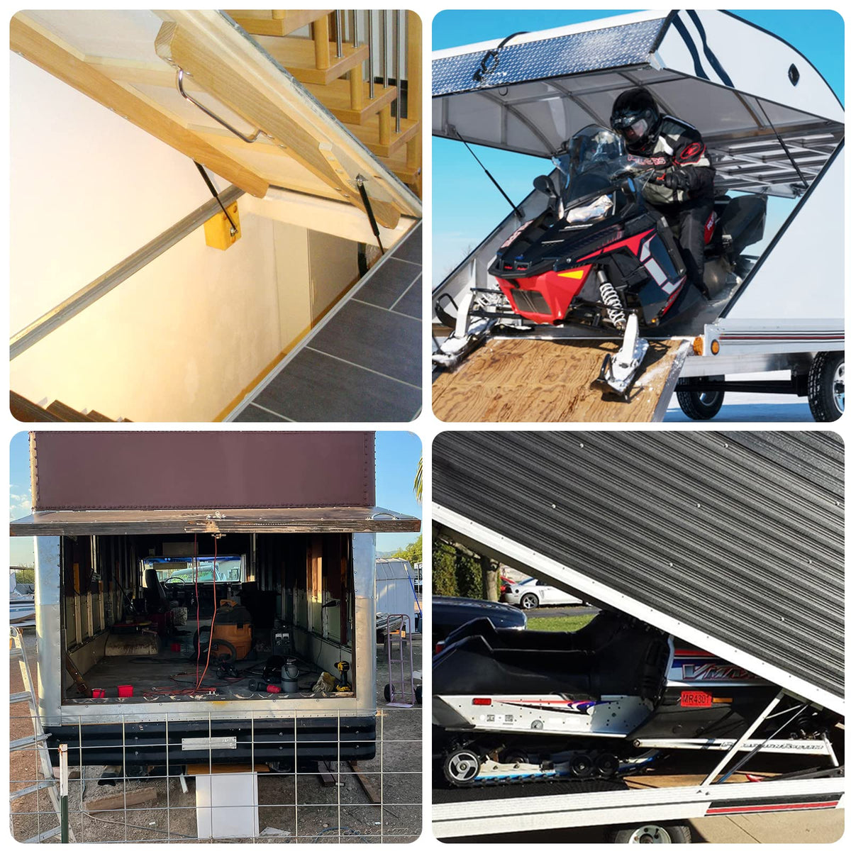 Q: What applications are these gas struts suitable for?A: ARANA C16-22632 gas struts are ideal for various applications, including snowmobile trailers, heavy sled trailer caps, truck covers, tonneau covers, and trap doors, as long as the lid weight is within the specified range of 160-200 pounds.
