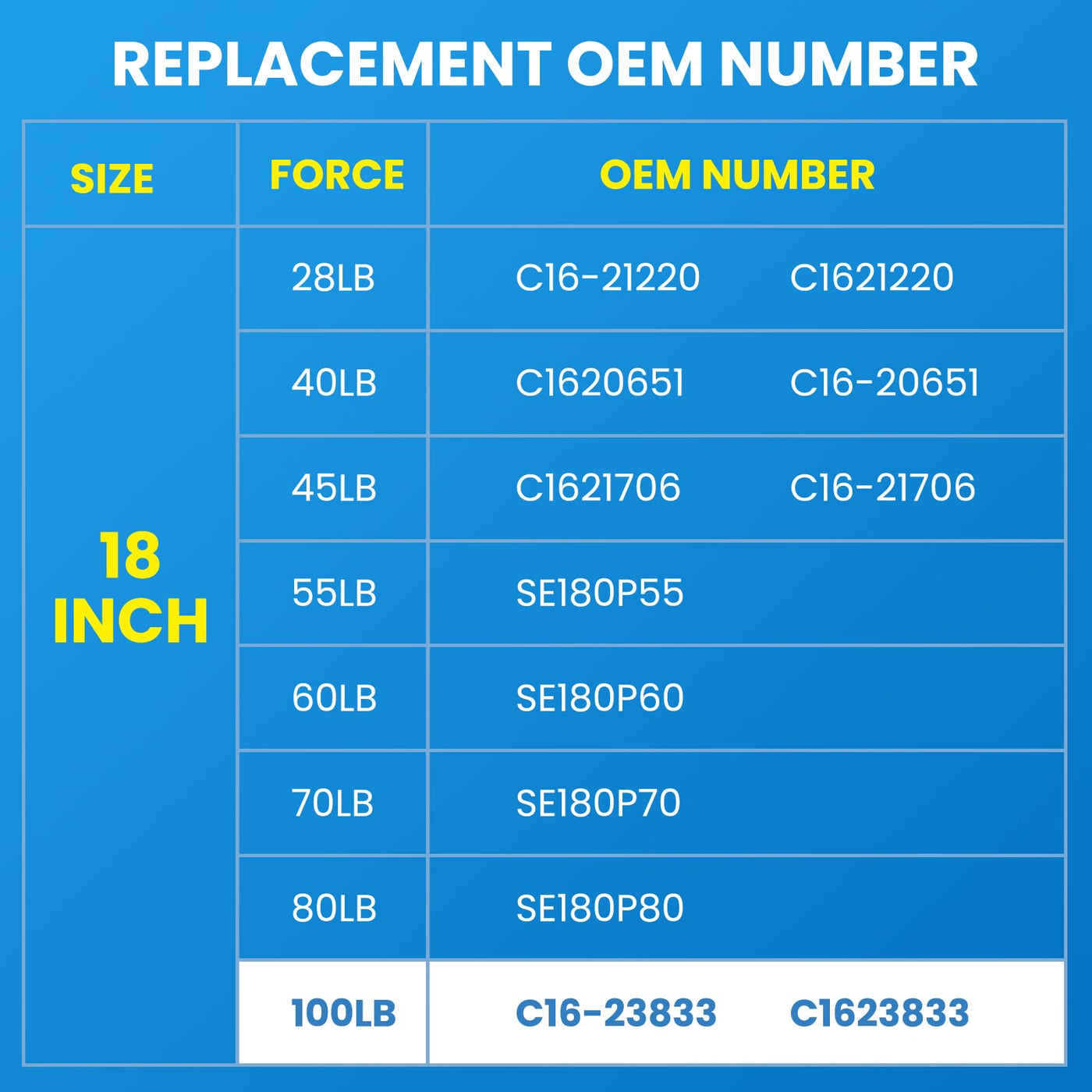 ARANA C16-23833 18 inch 100 Lb Gas Struts Spring Shocks could be perfectly used as the replacement struts for Toolbox Lid Stainless Steel Toolbox Costco Toolbox Lids, please check the part number on the strut cylinder and compare the size of your old struts to ensure you could buy correct replacement ARANA gas struts. Please check there's above-mentioned part number on the cylinder body of your old strut, and ensure the size of your old struts as same as ARANA struts; Please ensure the size length of the lid (installed with struts) is 18 inches at least for ARANA 24 inch shocks; Please weigh the lid at 20%~30% from the hinge of the door, if it reads about 80-110 pounds, you could select the ARANA C16-23833 18 inch 100 Lb; ARANA struts couldn't be compressed until installing, please do not try to compress them by hands or body before installing! Every ARANA lift strut comes with 18+1 replacement and lifetime technical support, please ask for in-time assistance!