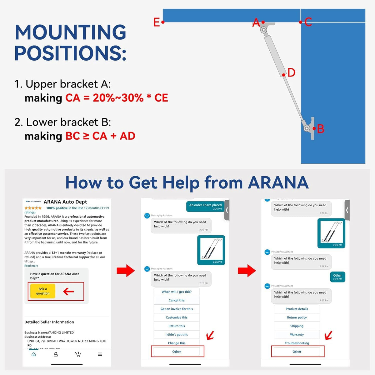 Arana Gas Struts 24 Inch 60Lbs With 10Mm Ball Socket, 24 '' Gas Spring Shocks Lift Supports For Heavy Duty Lid Snowmobile Traile