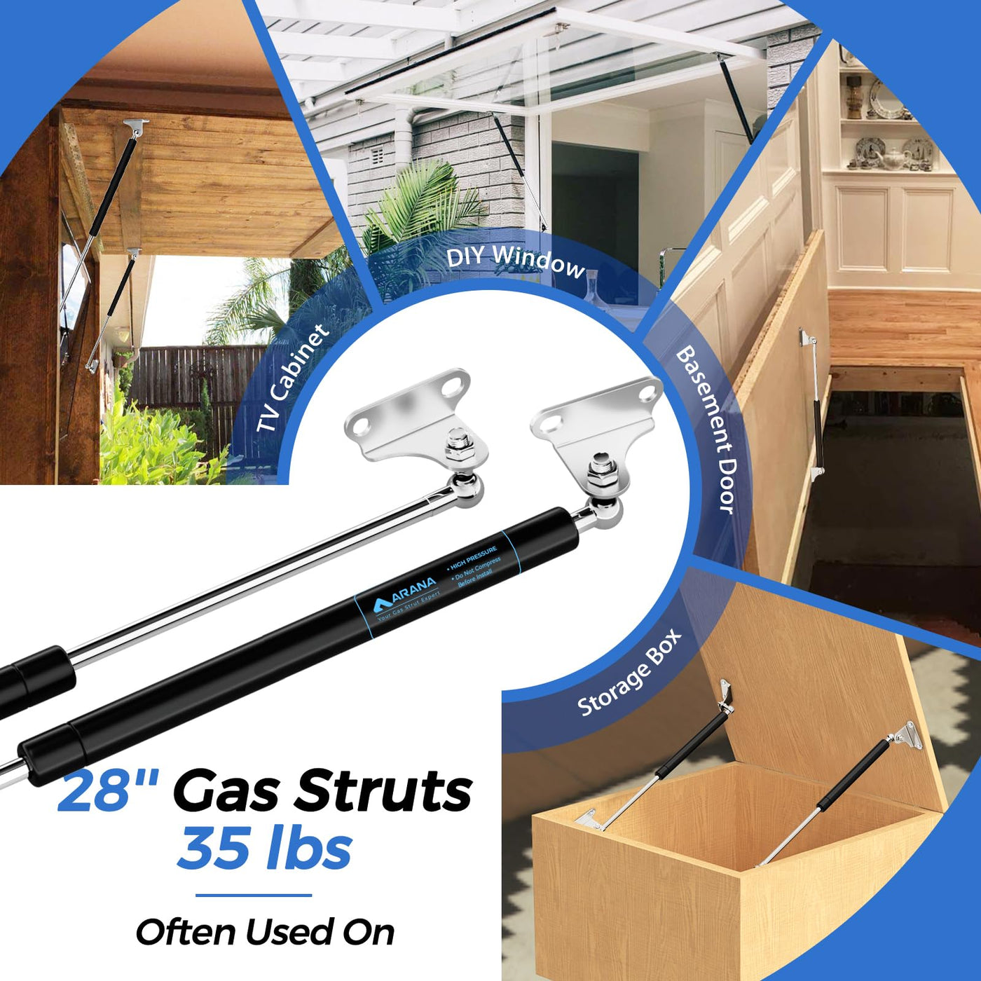 Arana Gas Struts 28 Inch 35Lb/156N Gas Shock Springs With Mounting Brackets, 28'' Lift Support For Bench Lid Tv Cabinet Custom W