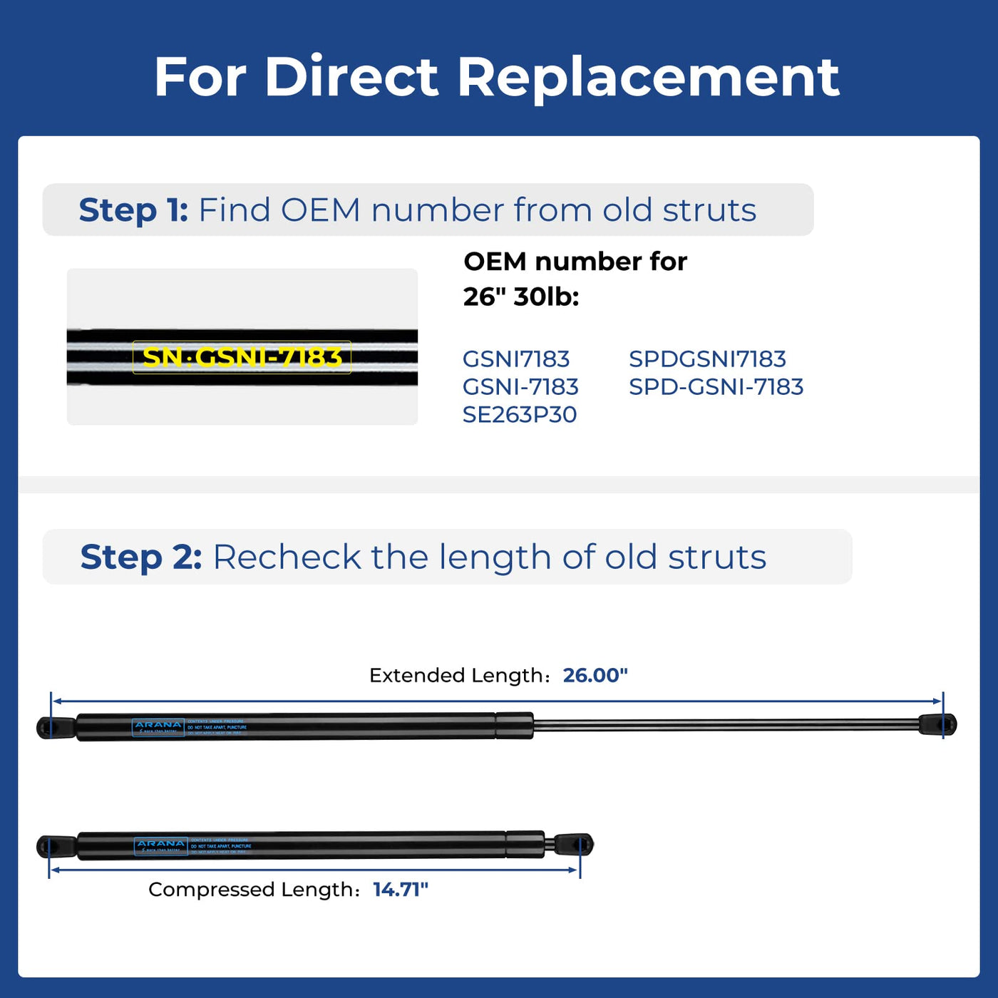 ARANA GSNI7183 26 inch 30LB Gas Spring Struts, SE263P30 26 133N Shocks Lift Support for Truck Tonneau Cover Boat Motor Hatch T