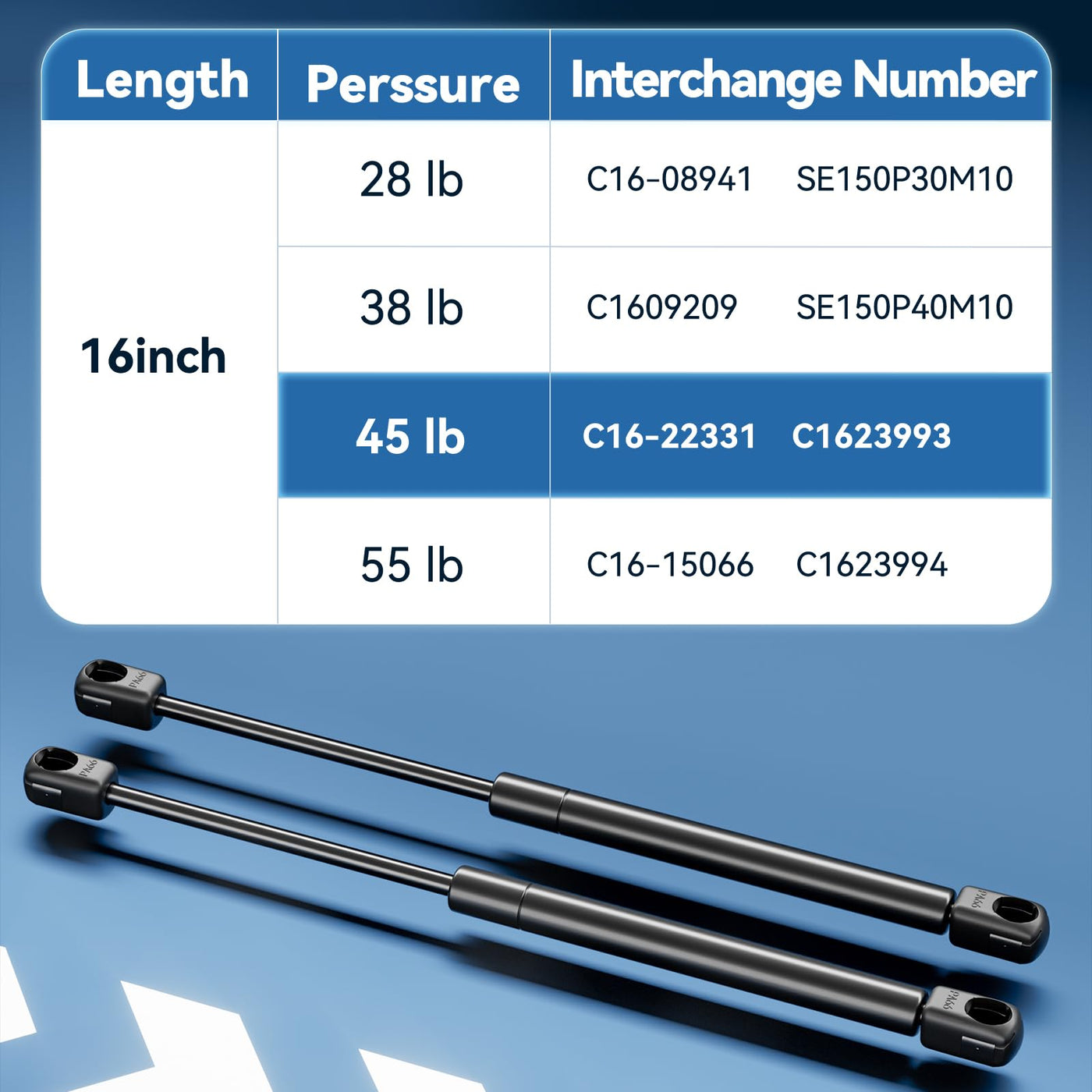 ARANA PROP 16 inch 45lb Gas Props, C16-15208 Gas Struts 15.7 inch Gas Shock Lift-Support for are Leer Camper Shell Rear Window Truck Snugtop Topper Canopy Door, Pack of 2 Gas Spring