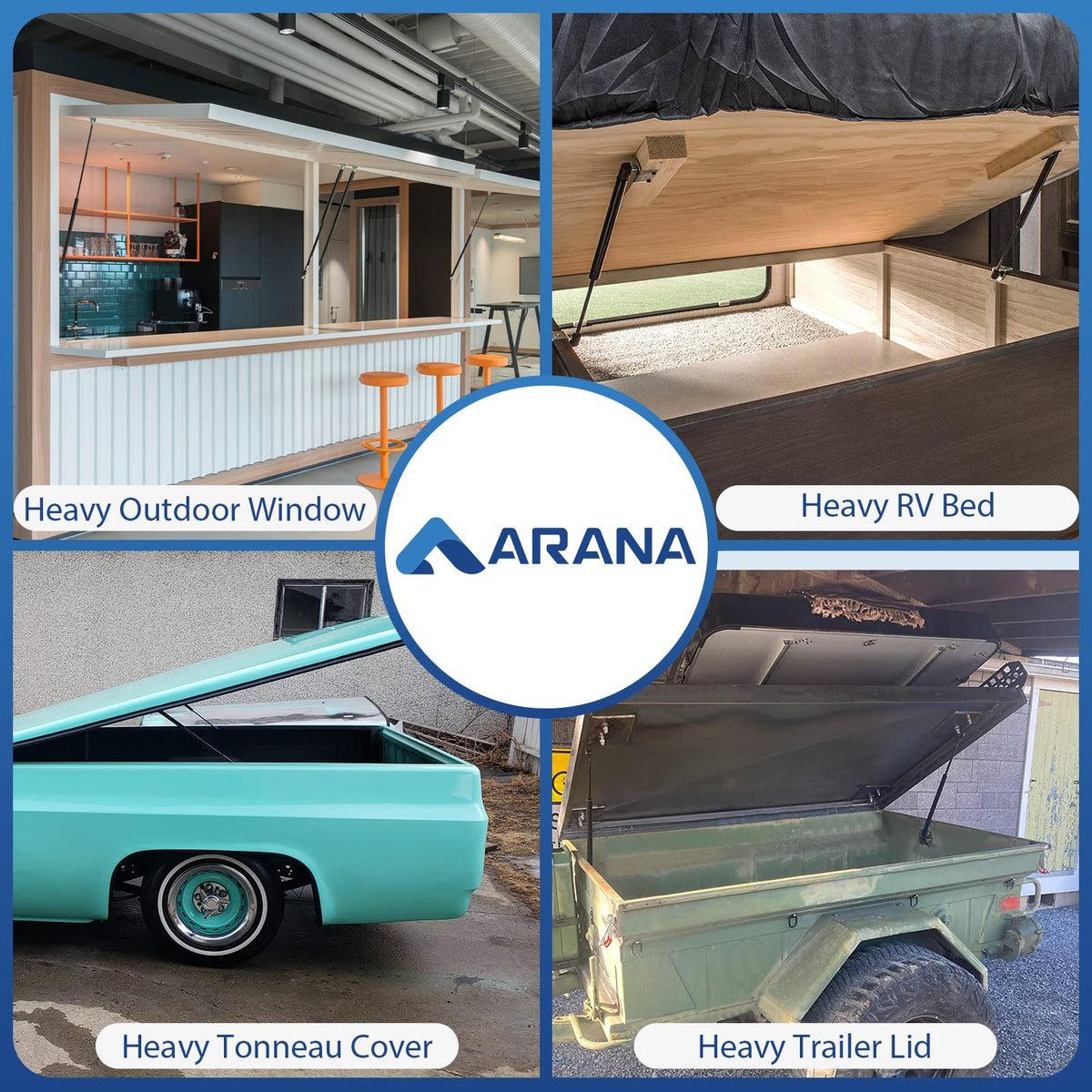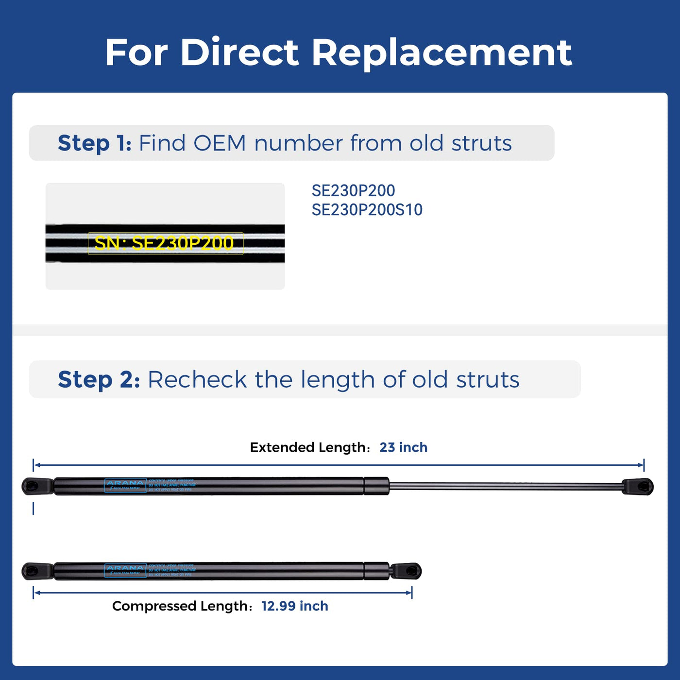 Arana Se230P200 23'' Gas Struts - 200Lb Prop Springs Shocks For Heavy Rv, Trailer & Tonneau Cover, 2Pcs