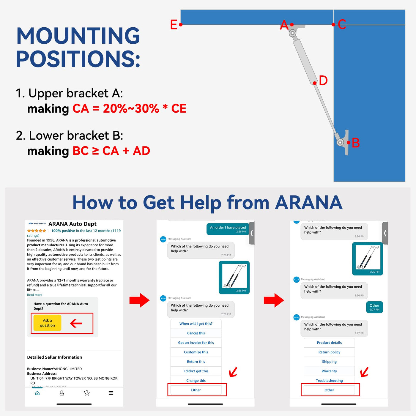 Arana Se244P40S10 24 Inch 40 Lb Gas Struts Spring Shocks Se24Other40 24 Inch 40Lb Lift Support For Rv Side Motorhome Door Camper Shell Rear Window Tonneau Cover Canopy Hatch Teardrop Camper, Set Of 2