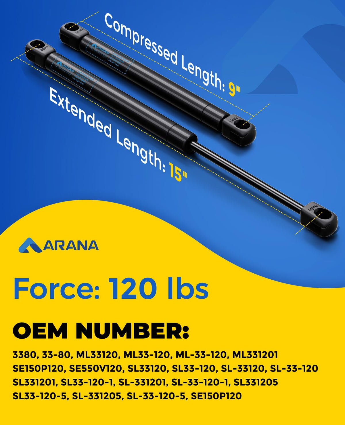 Arana Sl33-120 15 Inch Gas Strut, 15'' 120Lb/534N Lift Support For Are Truck Topper Leer Canopy Cap Camper Shell Rear Window Flo
