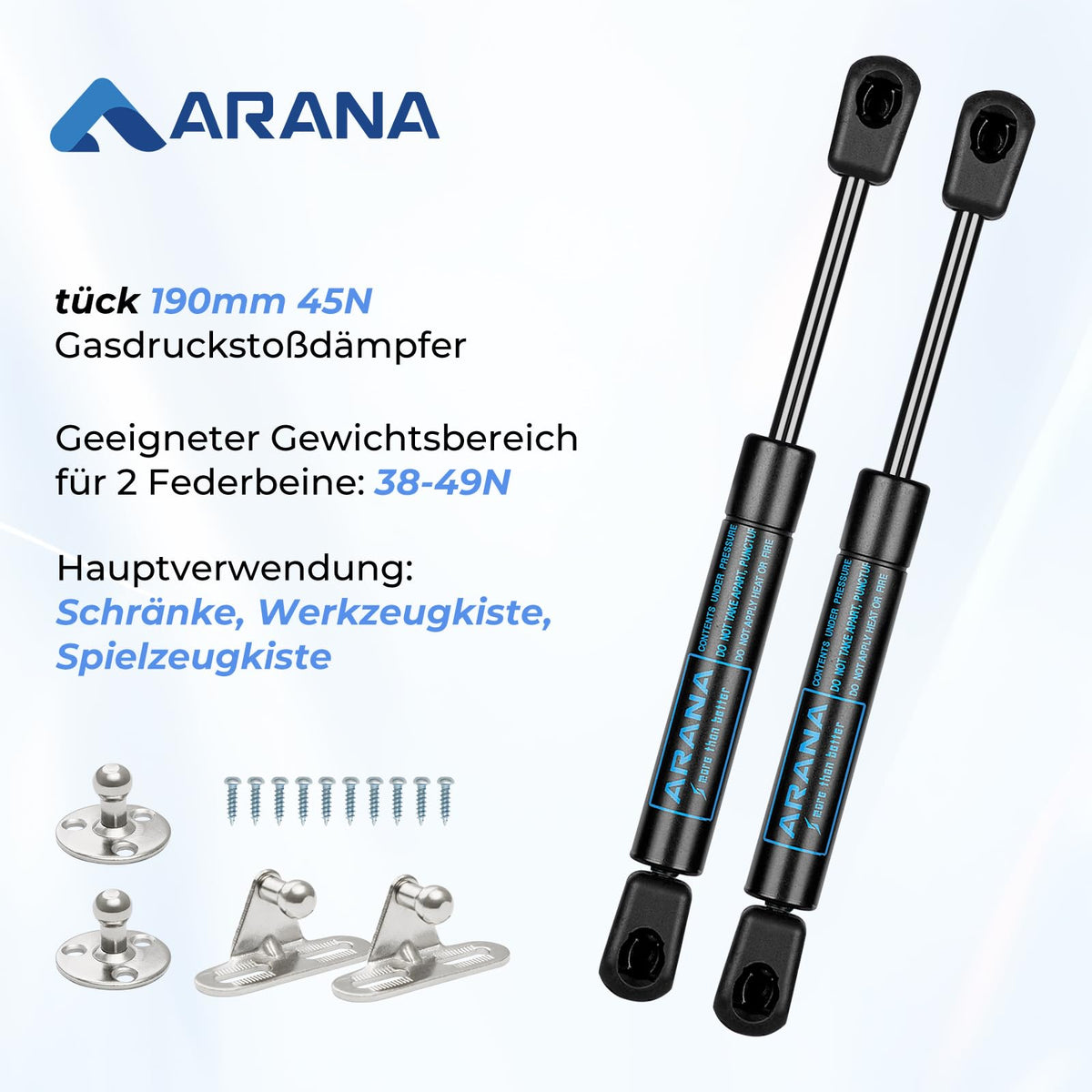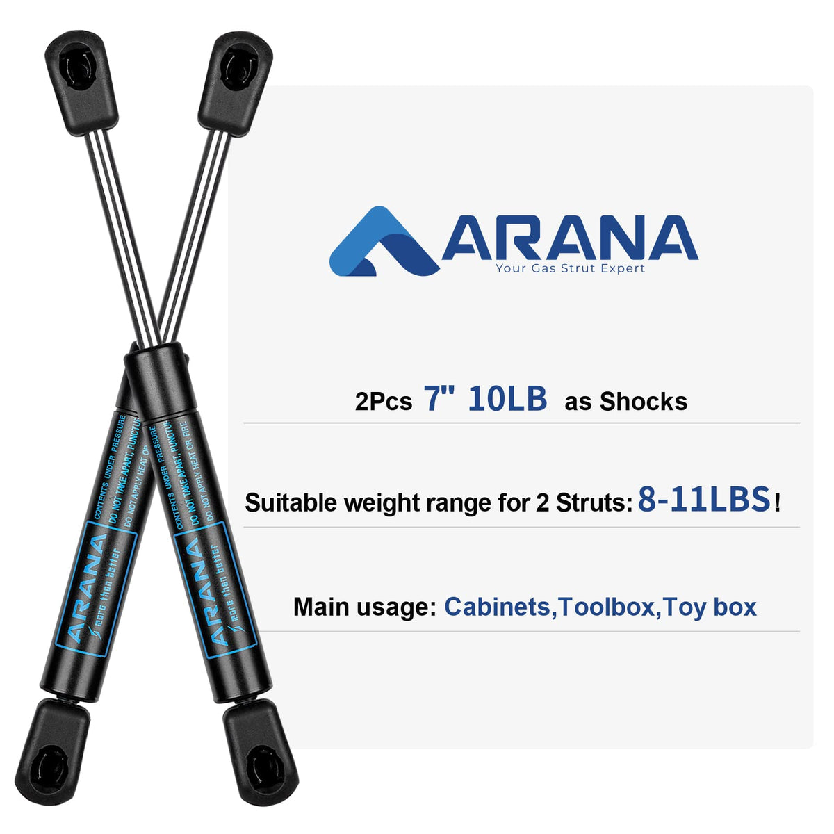 ARANA SPD490010 7 inch 10 lb/45 N Gas Struts Spring Shocks Lid Support, 2 Pcs 7.5' 45N Gas Props Lift Supports for Cabinet Door Lid Toolbox Lid Toy Box Stay